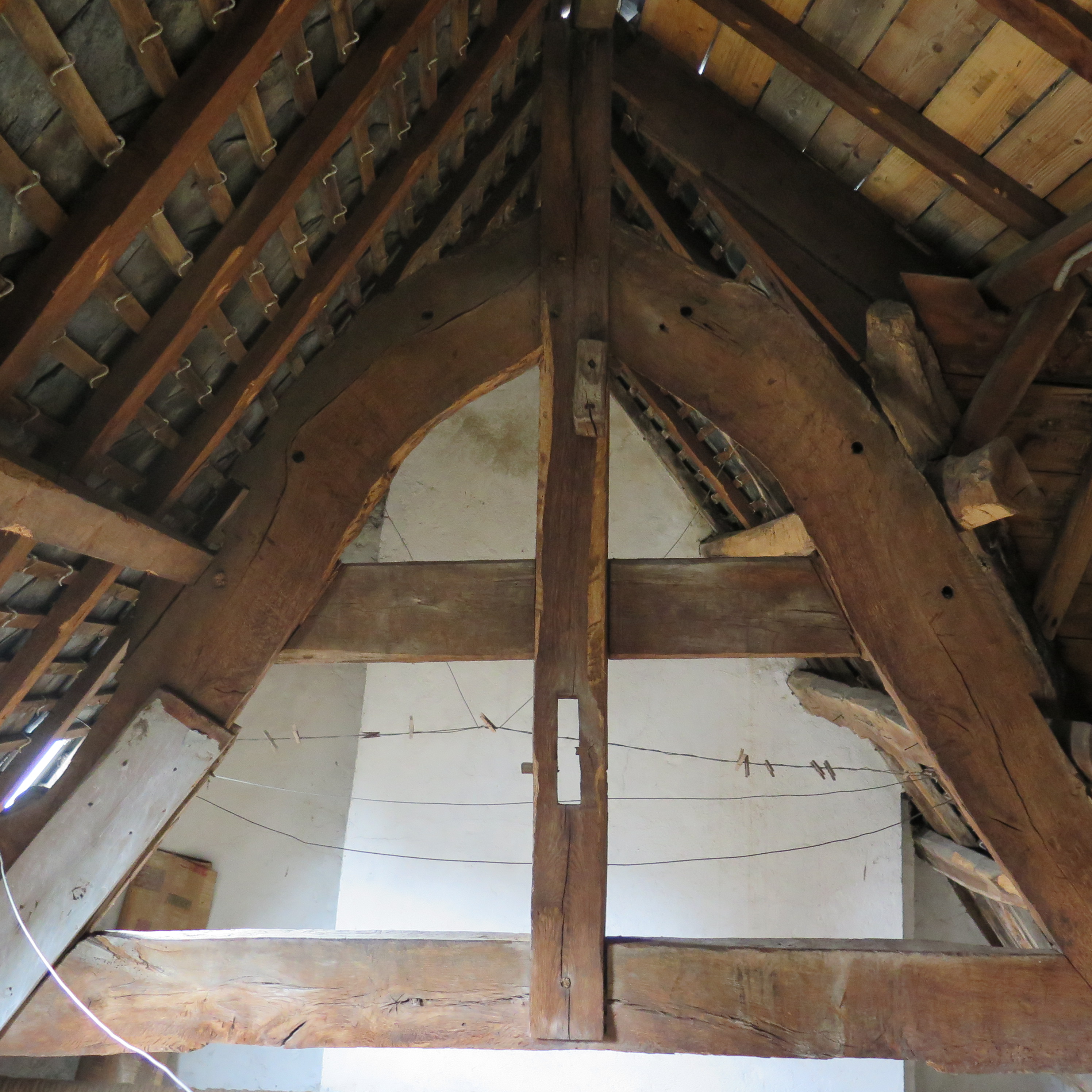 9 rue Colvestre : maison, étage de comble, détail d'une ferme de charpenteImmatriculation