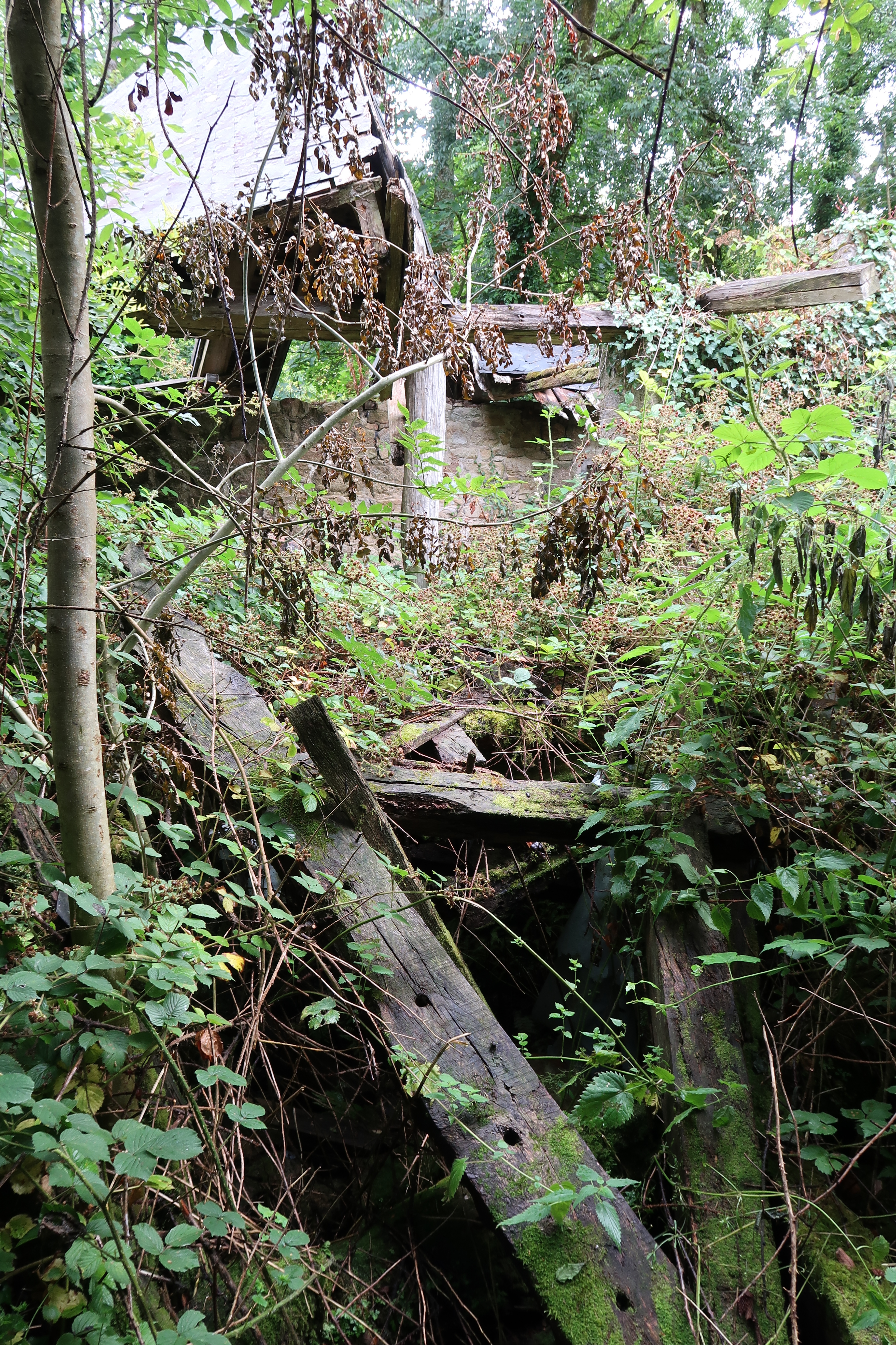 Moulin, vue intérieure après effondrement de la charpente et de la couverture (état en 2019)Immatriculation