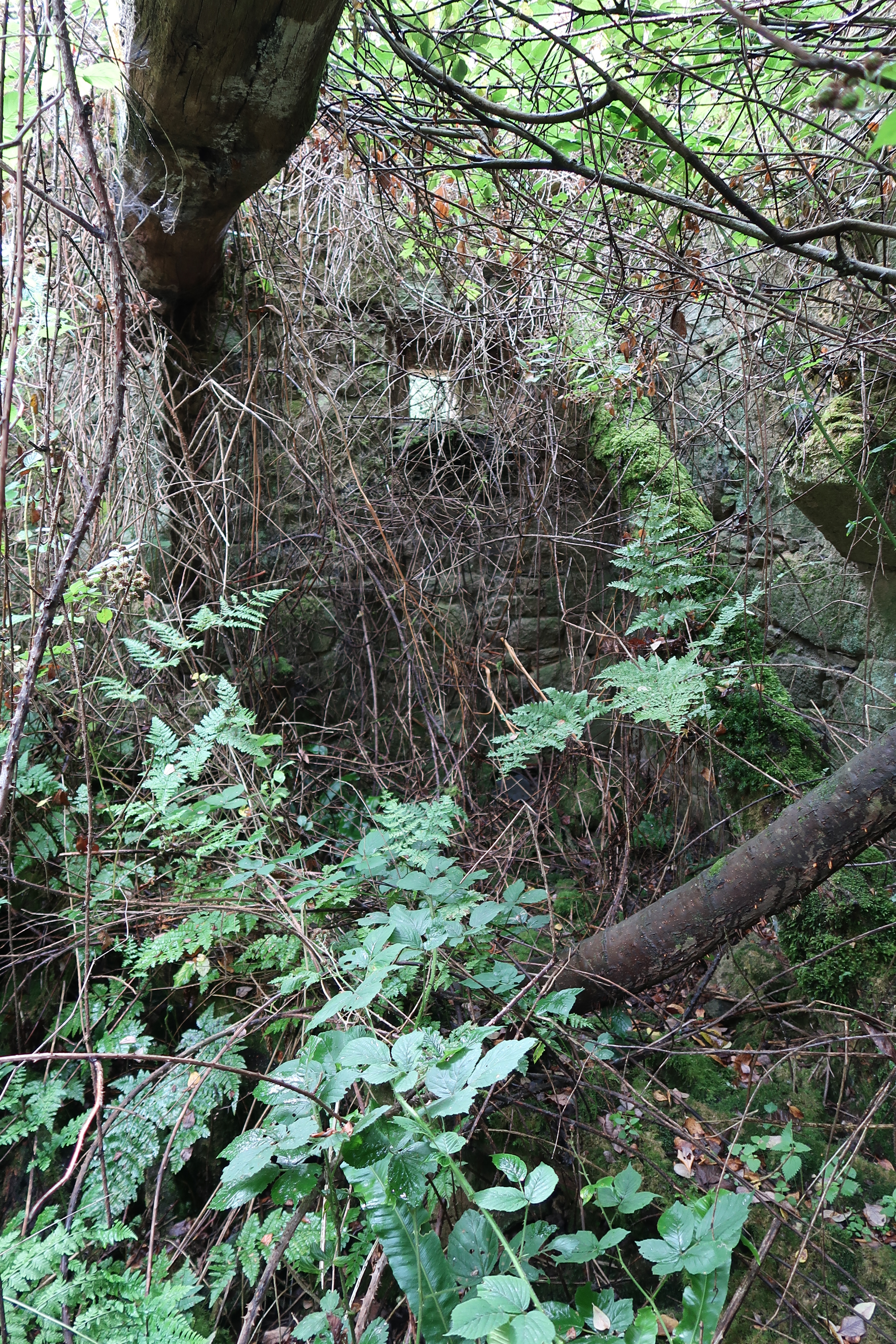Moulin, vue intérieure après effondrement de la charpente et de la couverture, emplacement du kuz gwele (état en 2019)Immatriculation