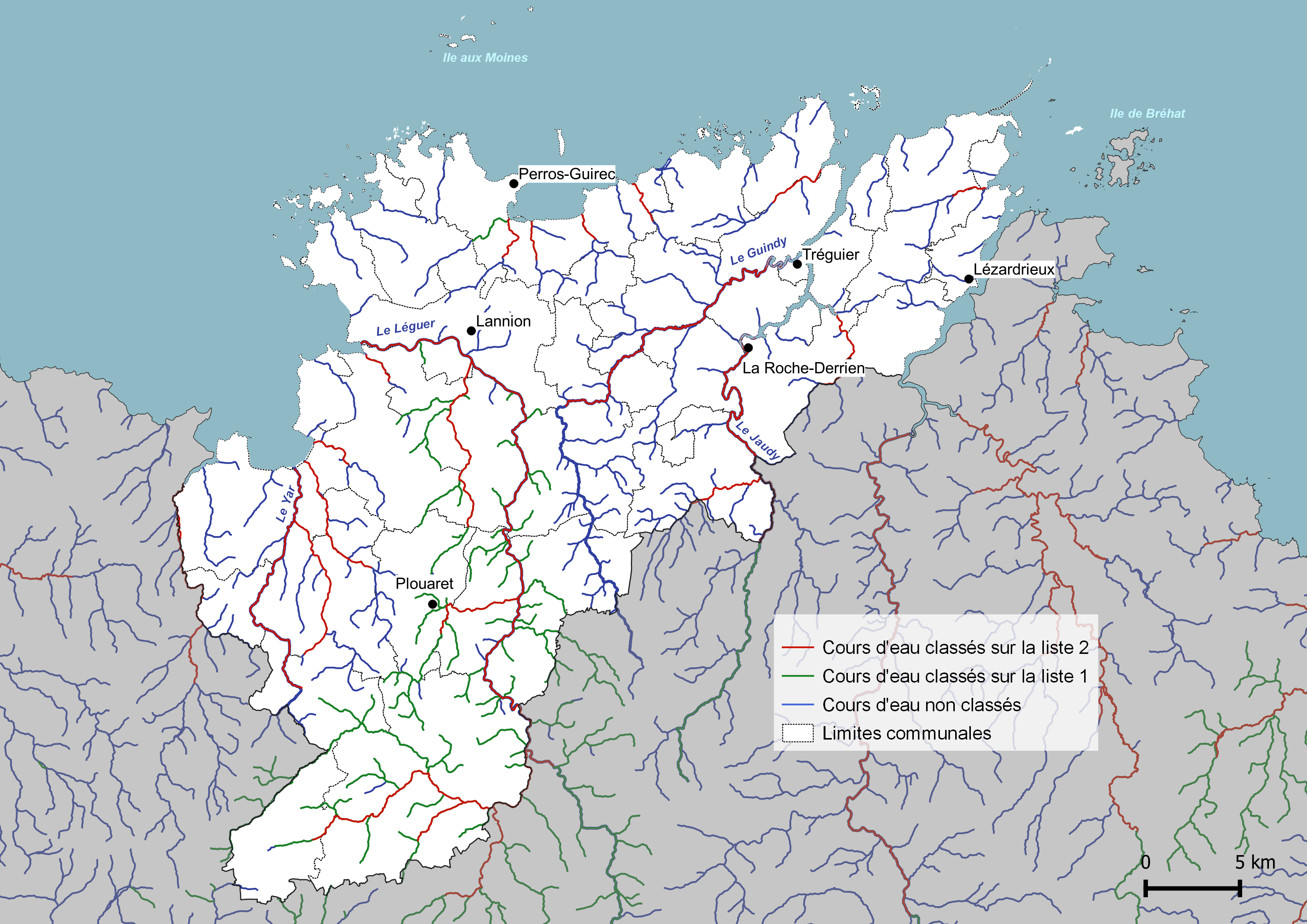 Couche des cours d'eau classés liste 1 : eaufrance, Segment de classement de continuité écologique - Métropole.