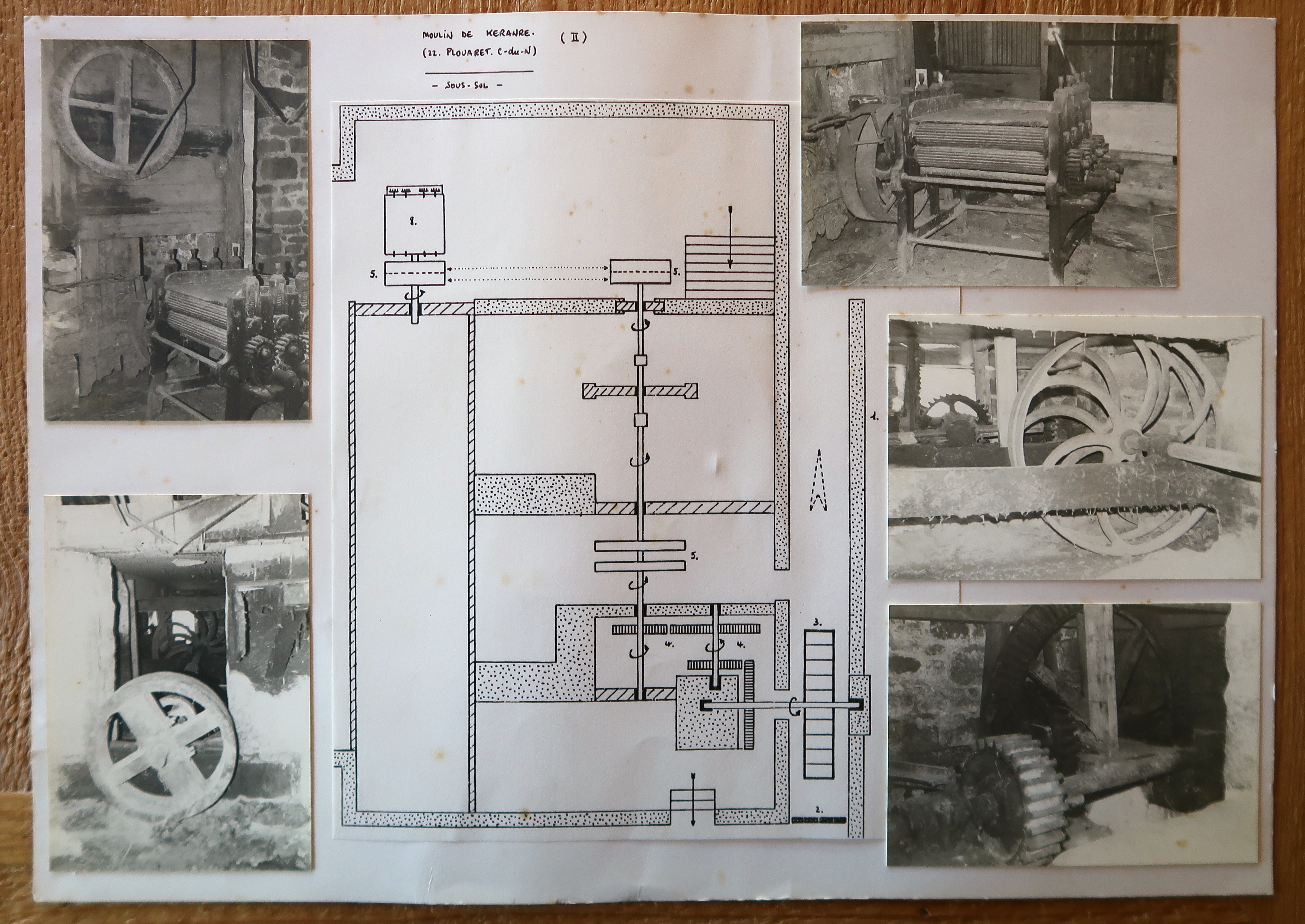 Planche n° 2 : plan du sous-sol avec ses mécanismes et photographies de l'état ancien par Jean-Yves Andrieux (non daté, vers 1990)Immatriculation