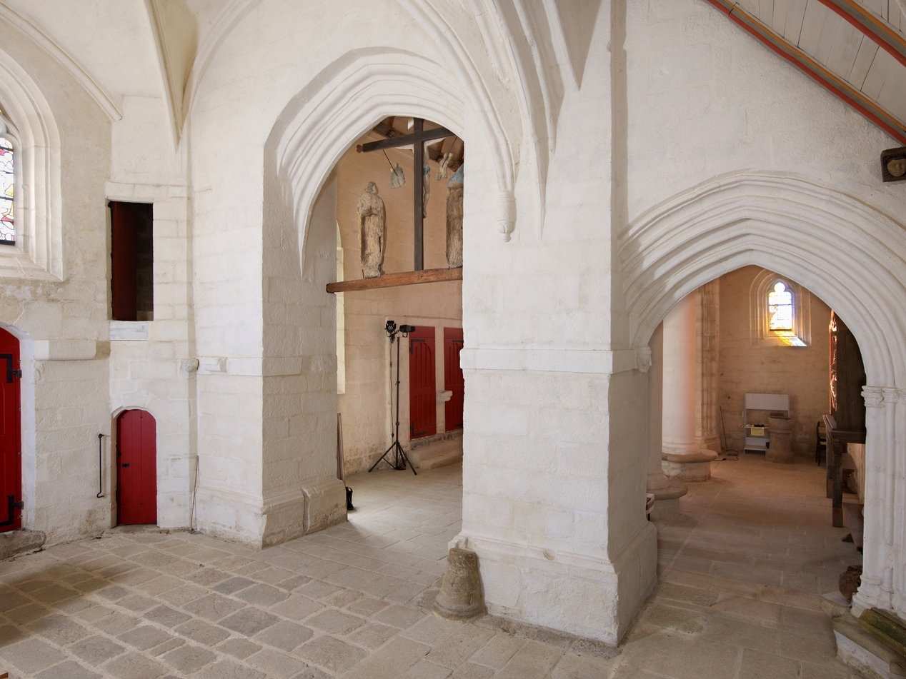 Piliers carrés supportant le clocher d'origine et portes d'accès au jubé disparuImmatriculation