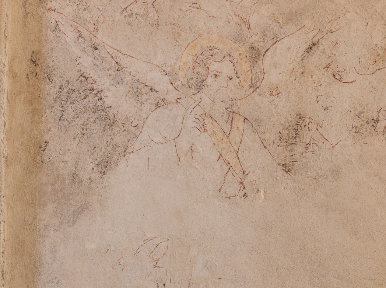 Chapelle sud : partie d'une Annonciation, l'archange Gabriel, détail ?Immatriculation