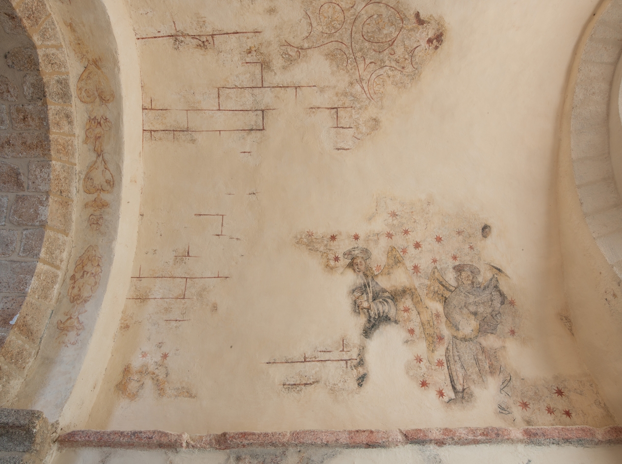 Voute de la chapelle sud : deux états de décor, faux appareillage et anges musiciensImmatriculation