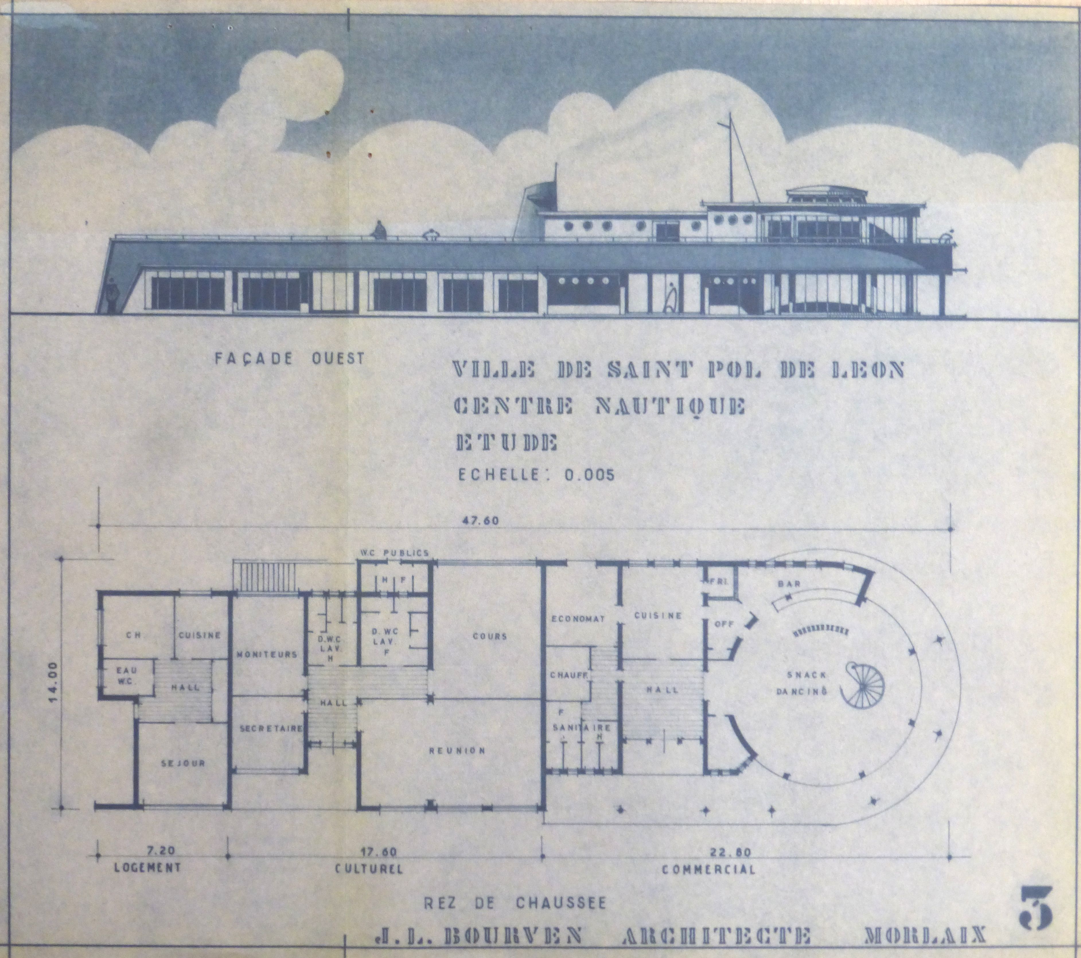 AD Finistère : 214 J 29. Étude pour le centre nautique. J.-L. Bourven, 1970.