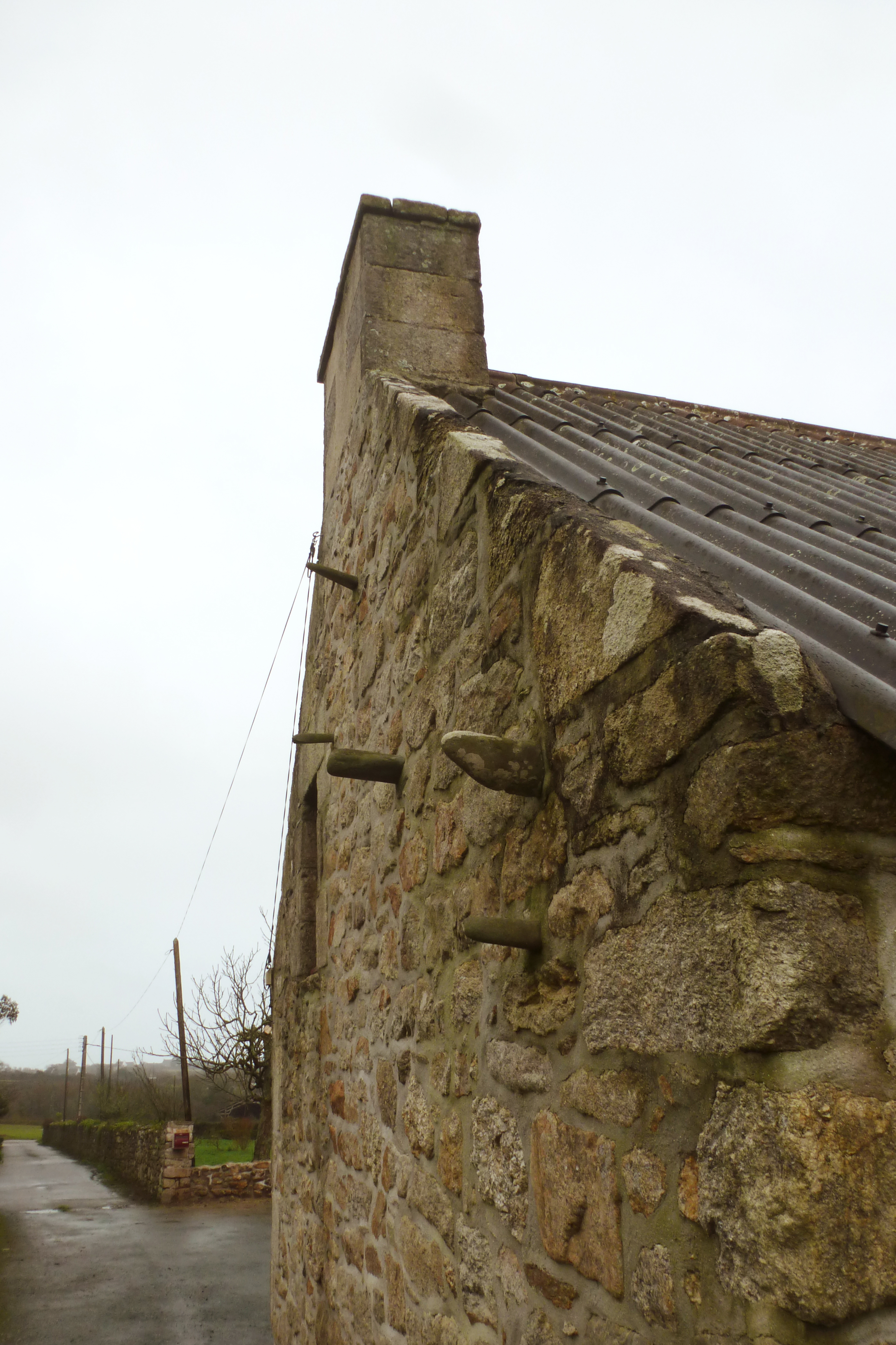 Grange datée 1873, pignon est. Galets saillants.Immatriculation