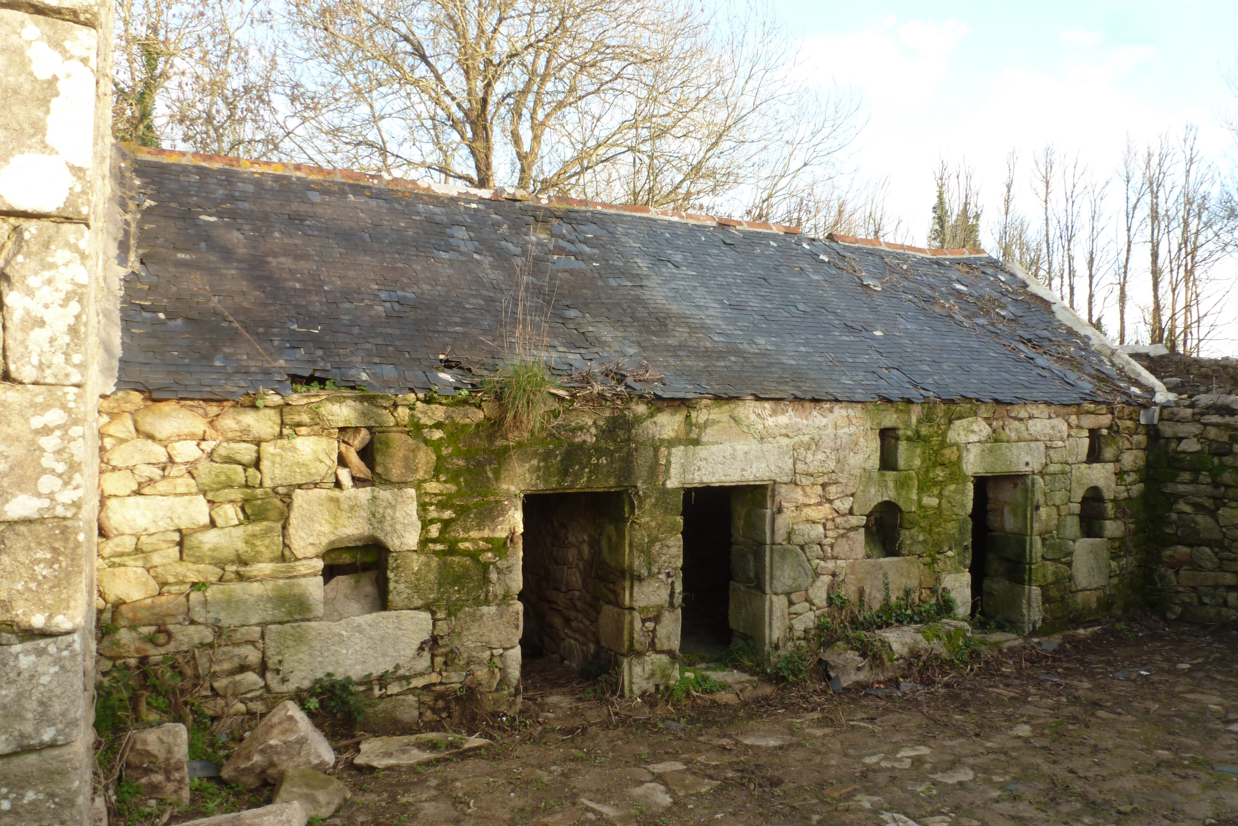 Ferme1, crèches à cochons datées 1841(?), façade ouest : mangeoires, portes et jours.Immatriculation