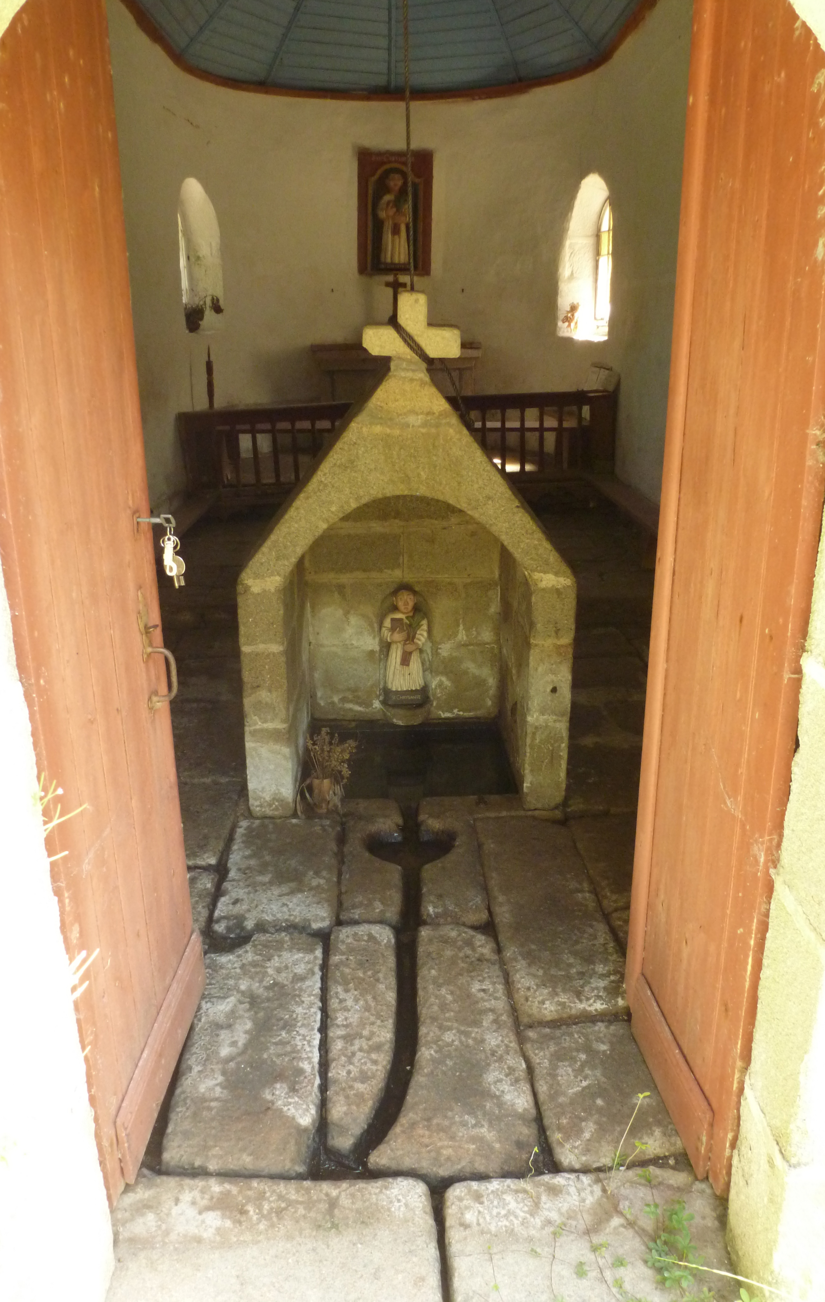 Fontaine dans la chapelle : édicule et écoulement de l'eau.Immatriculation