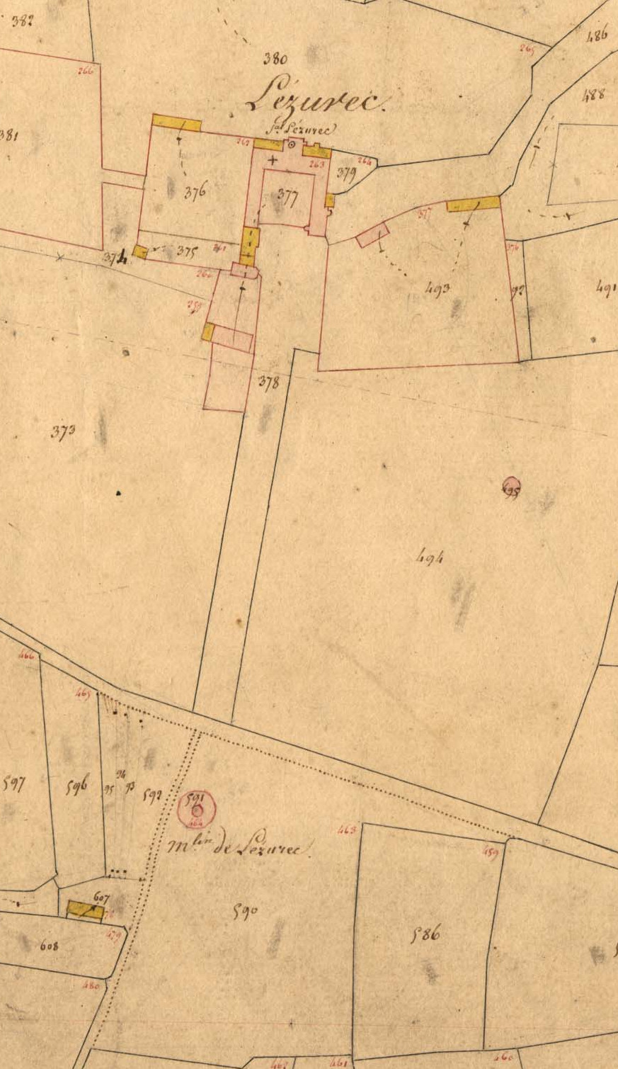 Moulin disparu de Lezurec, cadastre ancien de la commune de Primelin, 1837.Immatriculation