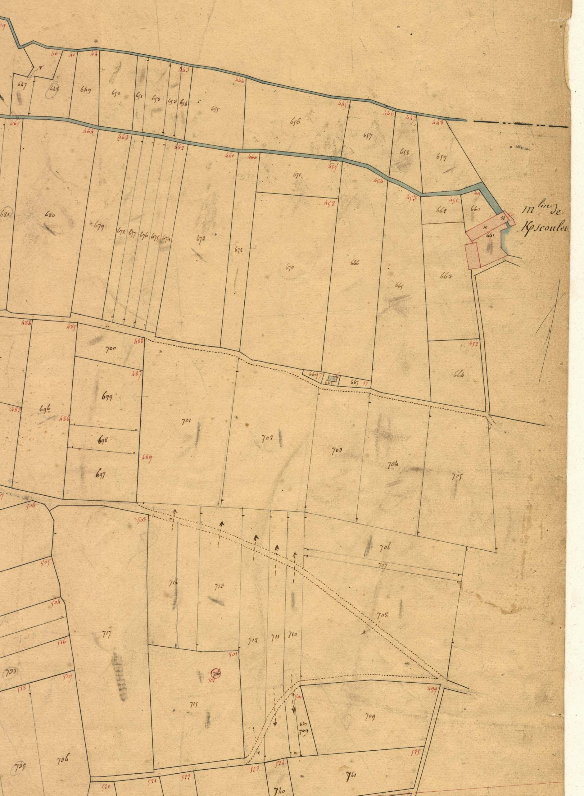 Moulins à eau et à vent de Kerscoulet, cadastre ancien de la commune de Primelin, 1837.Immatriculation