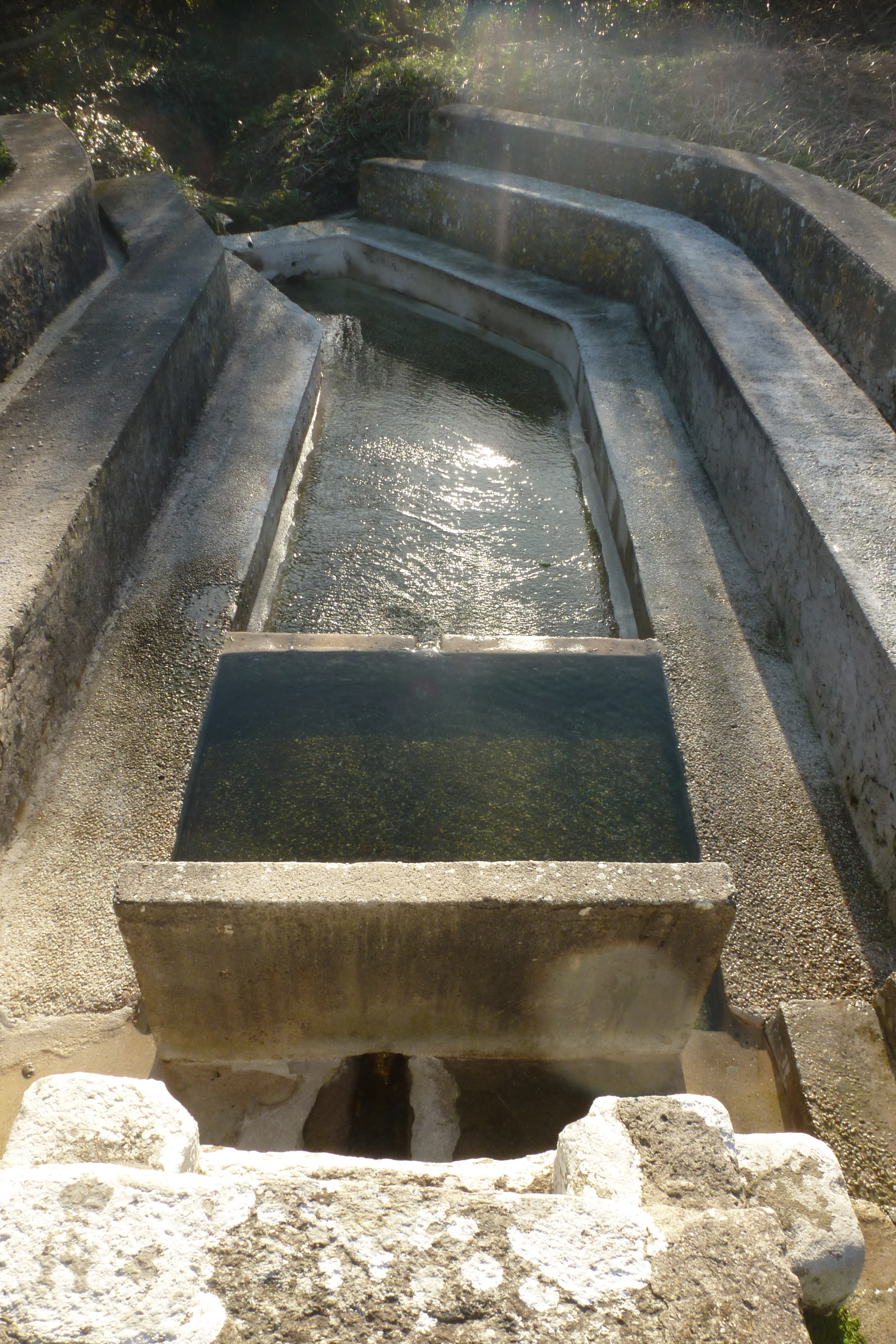 Vue rapprochée des deux bassins prise au-dessus de la fontaine.Immatriculation
