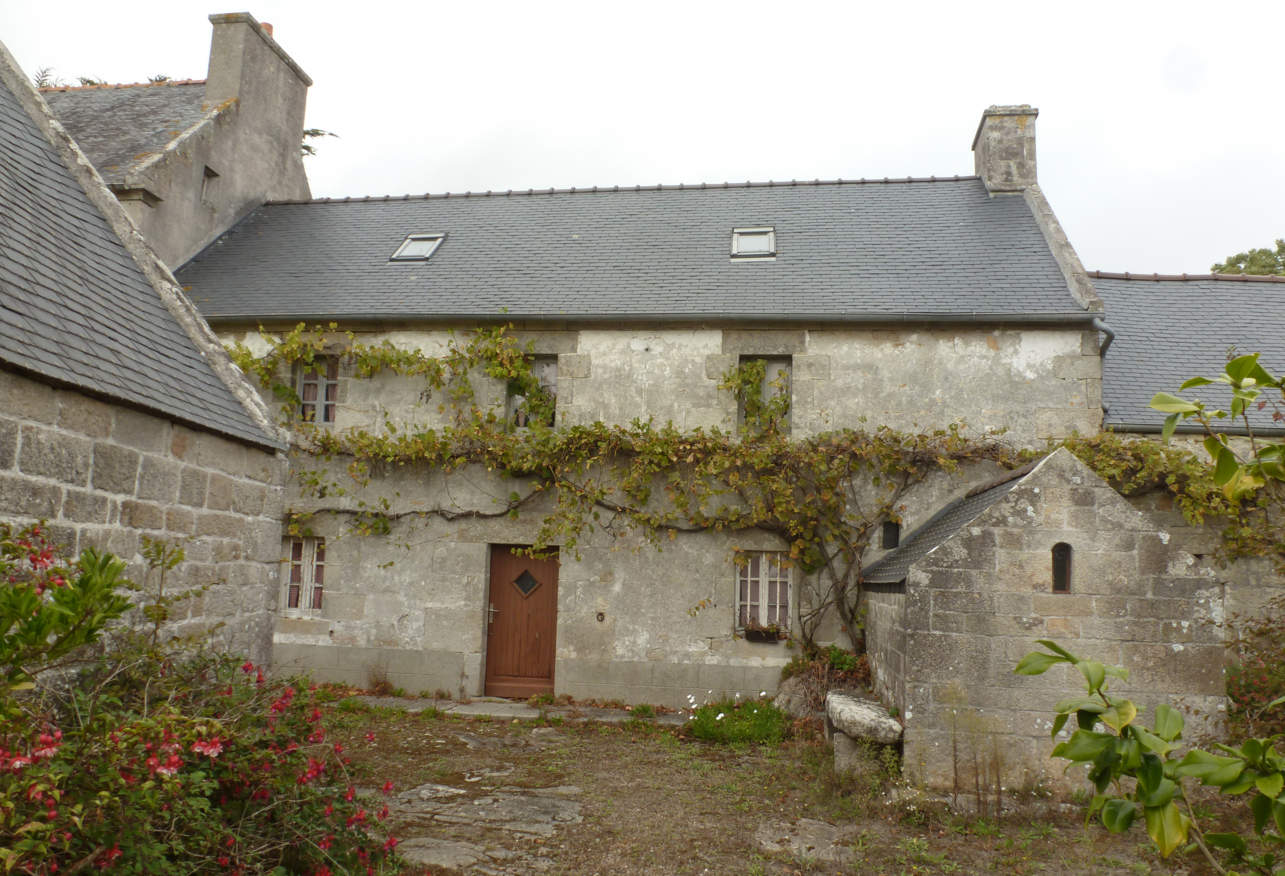 Ferme2, élévation antérieure du logis et "ti puns" (maison du puits).Immatriculation
