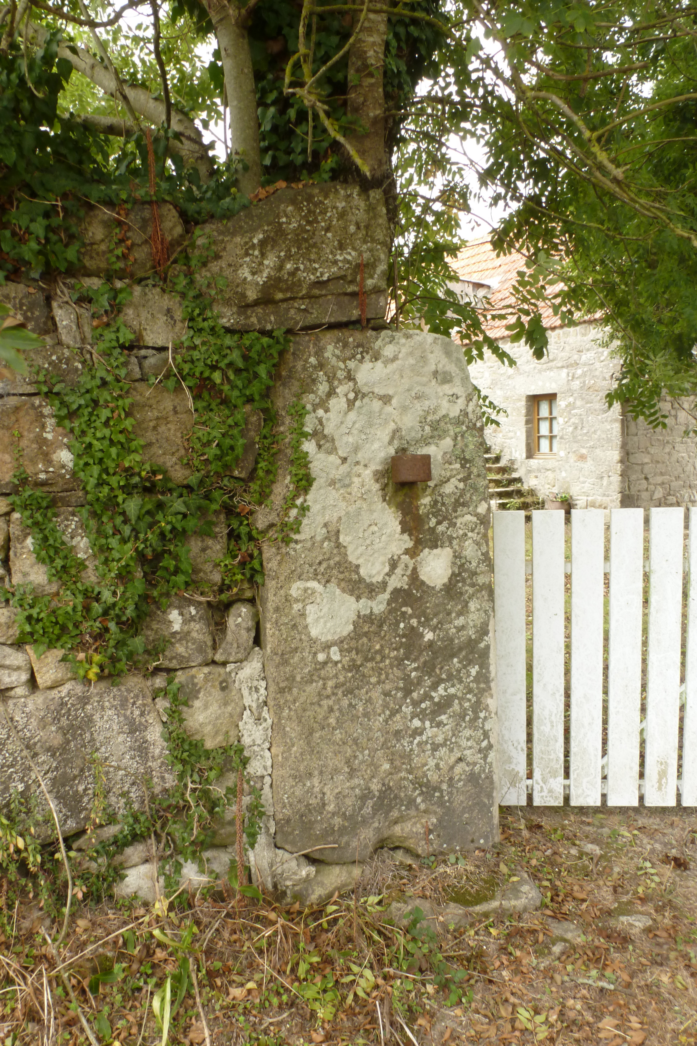 Ferme2, entrée de la cour au nord, détail d'une pierre dressée.Immatriculation