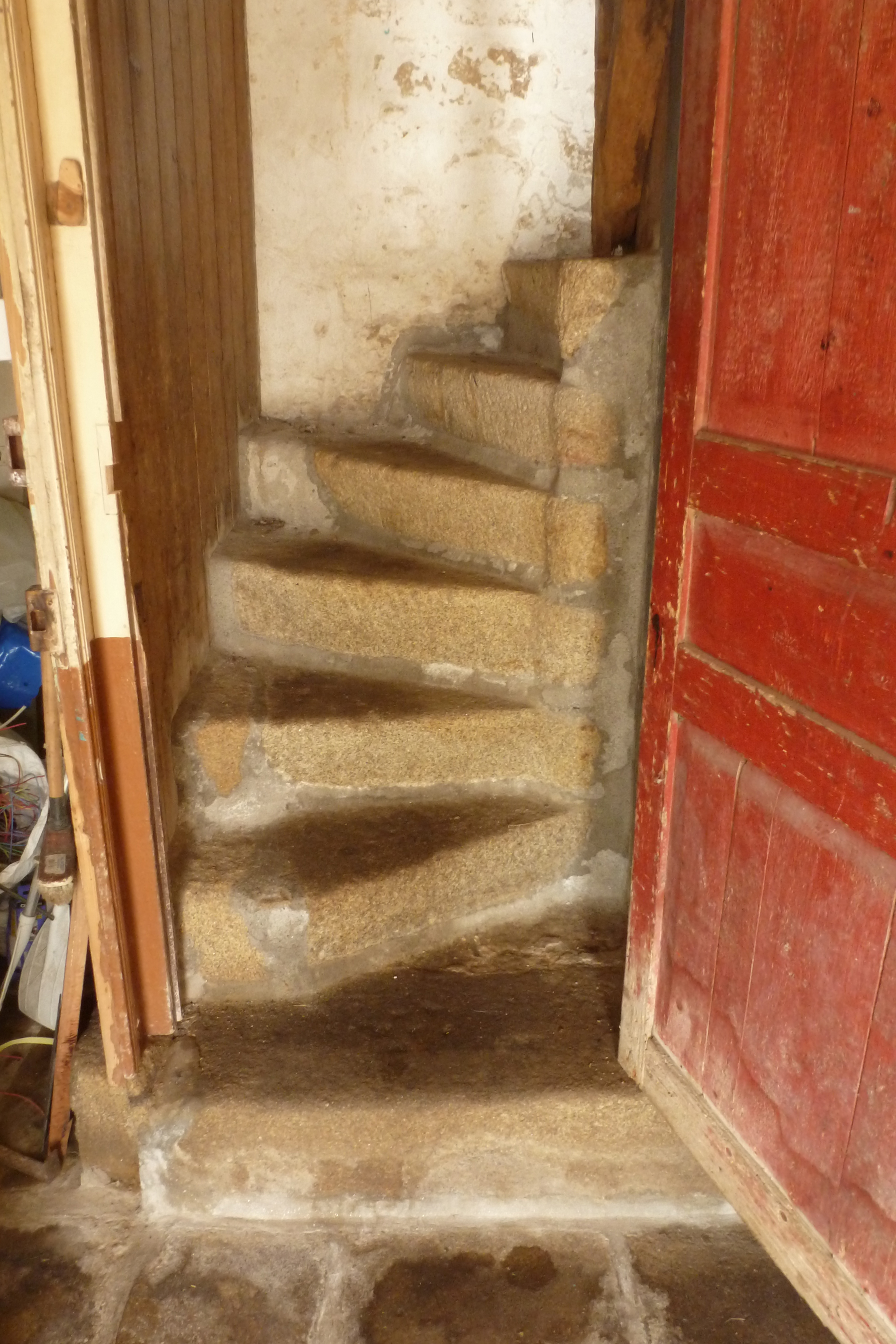 Escalier, détail des premières marches en pierre. (2019)Immatriculation