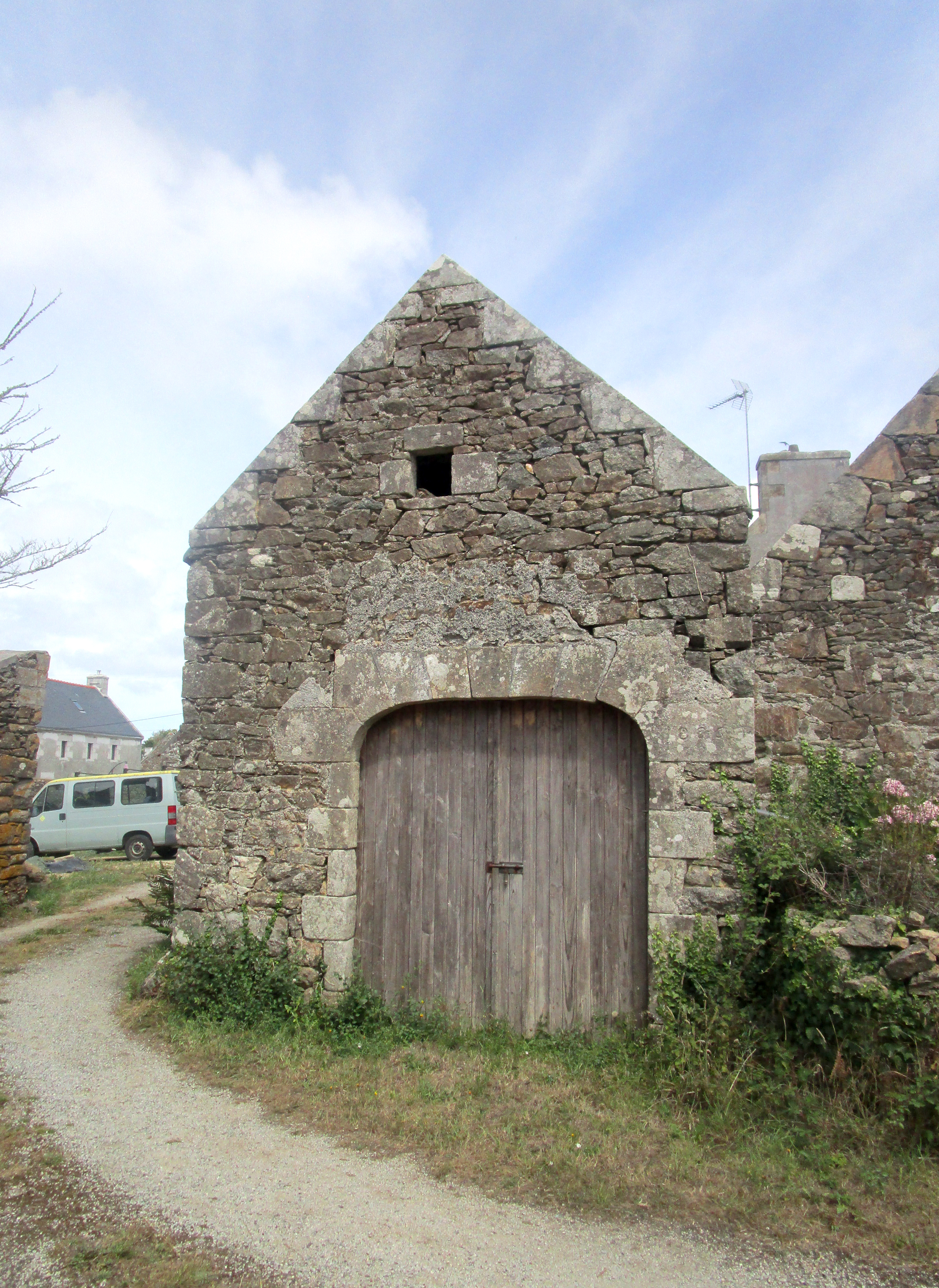 Ferme 2, grange à porte charretière en arc segmentaire datée 1886, pignon ouest.Immatriculation
