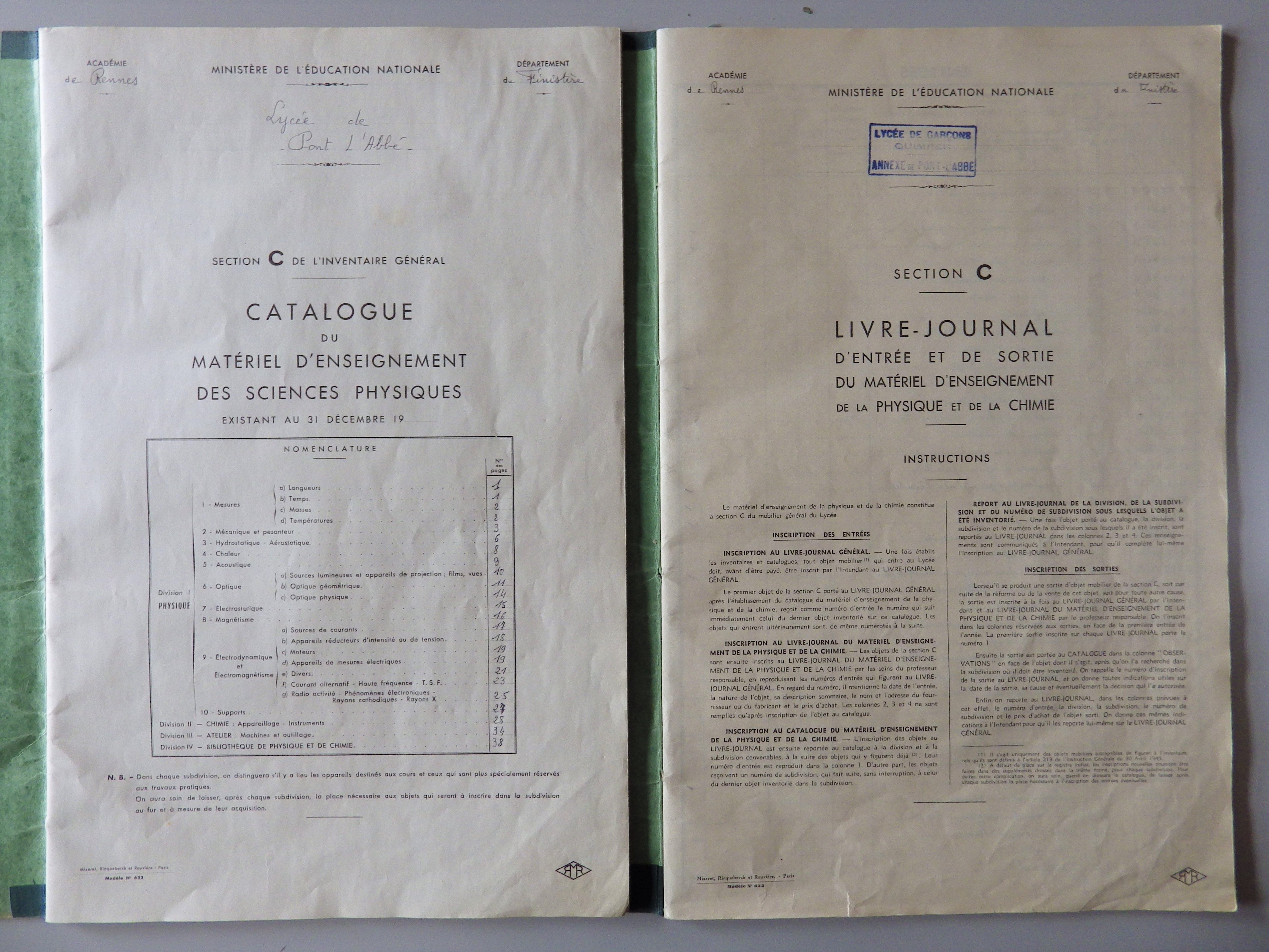 Catalogue et livre-journal du matériel d'enseignement de la physique et de la chimie du lycéeImmatriculation