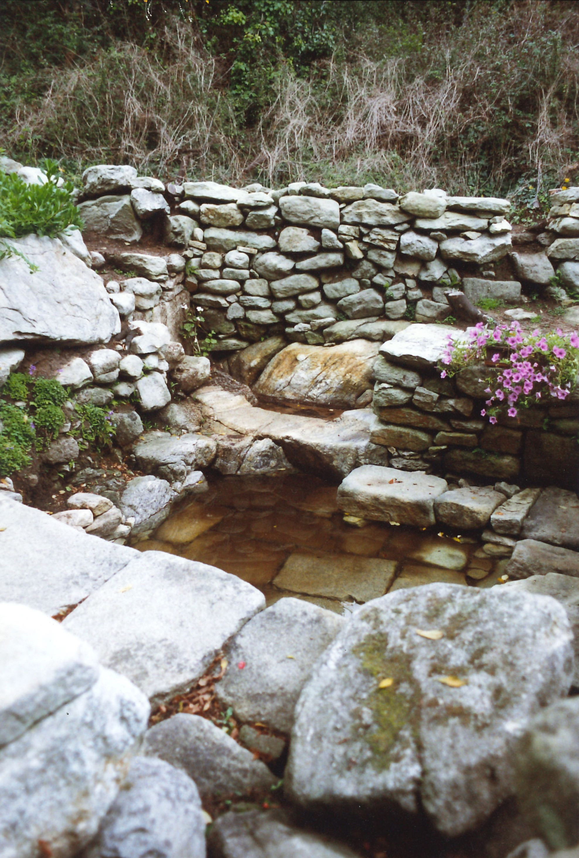 Angle nord-est, détail de l'arrivée d'eau et de la pierre creuse. (1999)Immatriculation