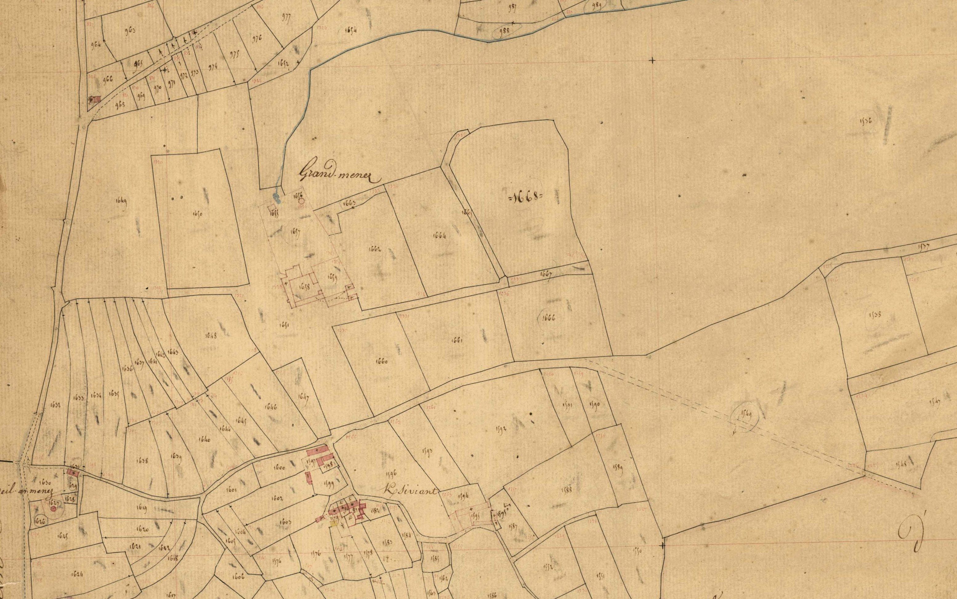 Menez Bras et moulin "Meil ar Menez", cadastre ancien de la commune d'Esquibien, 1837.Immatriculation