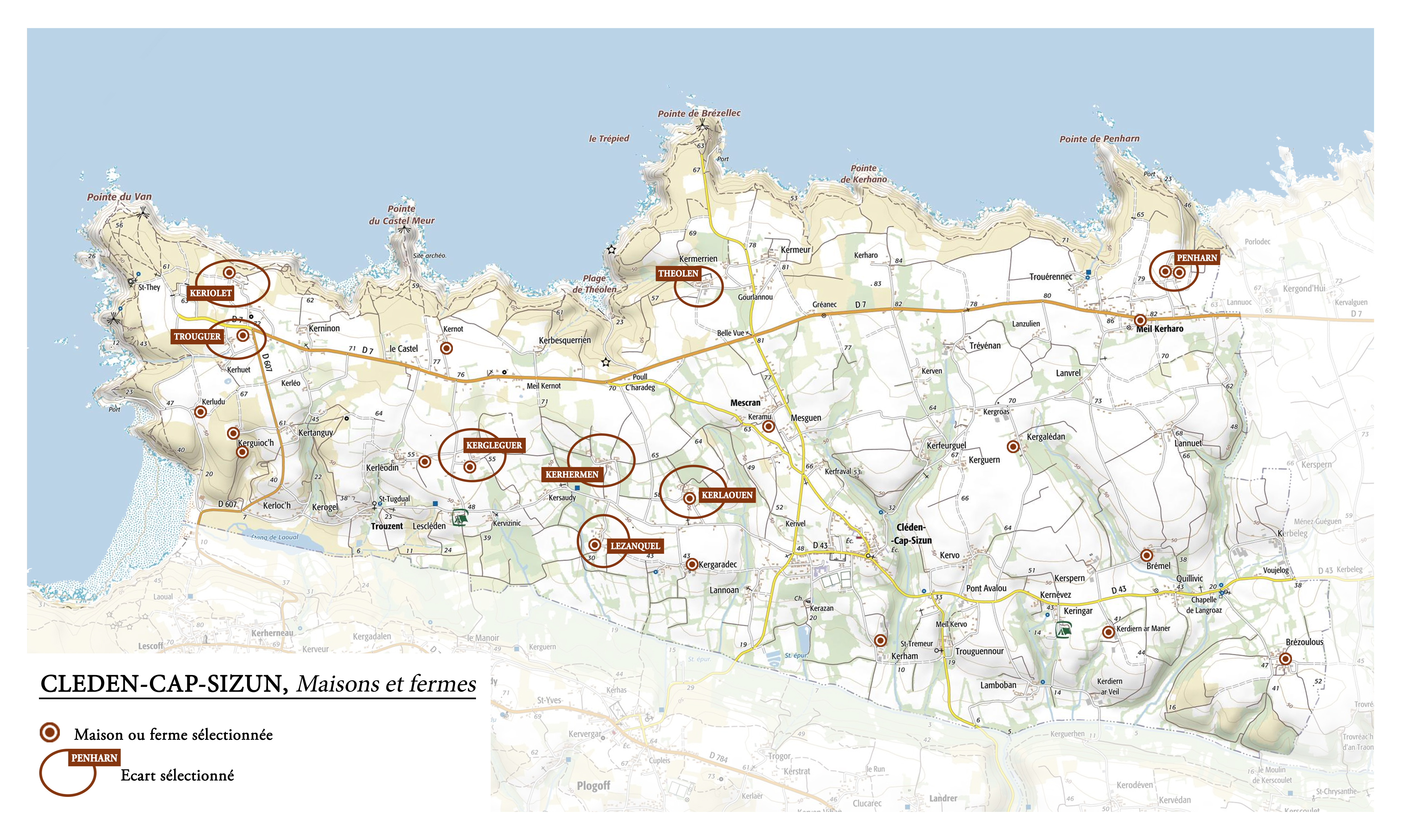 Les maisons et fermes de Cleden-Cap-Sizun, localisation des éléments sélectionnés.Immatriculation