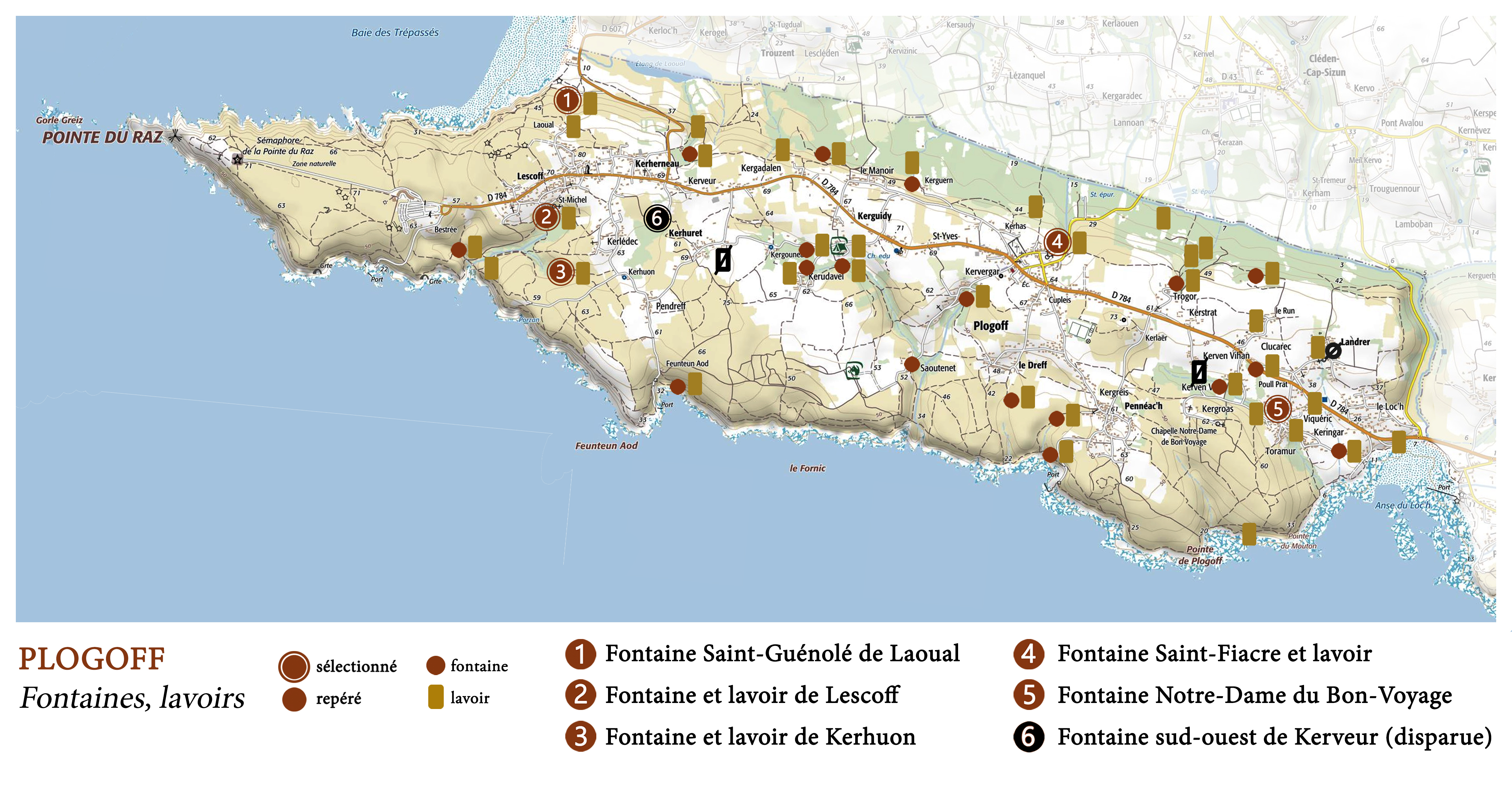 Les lavoirs et fontaines de Plogoff, carte de localisation.Immatriculation