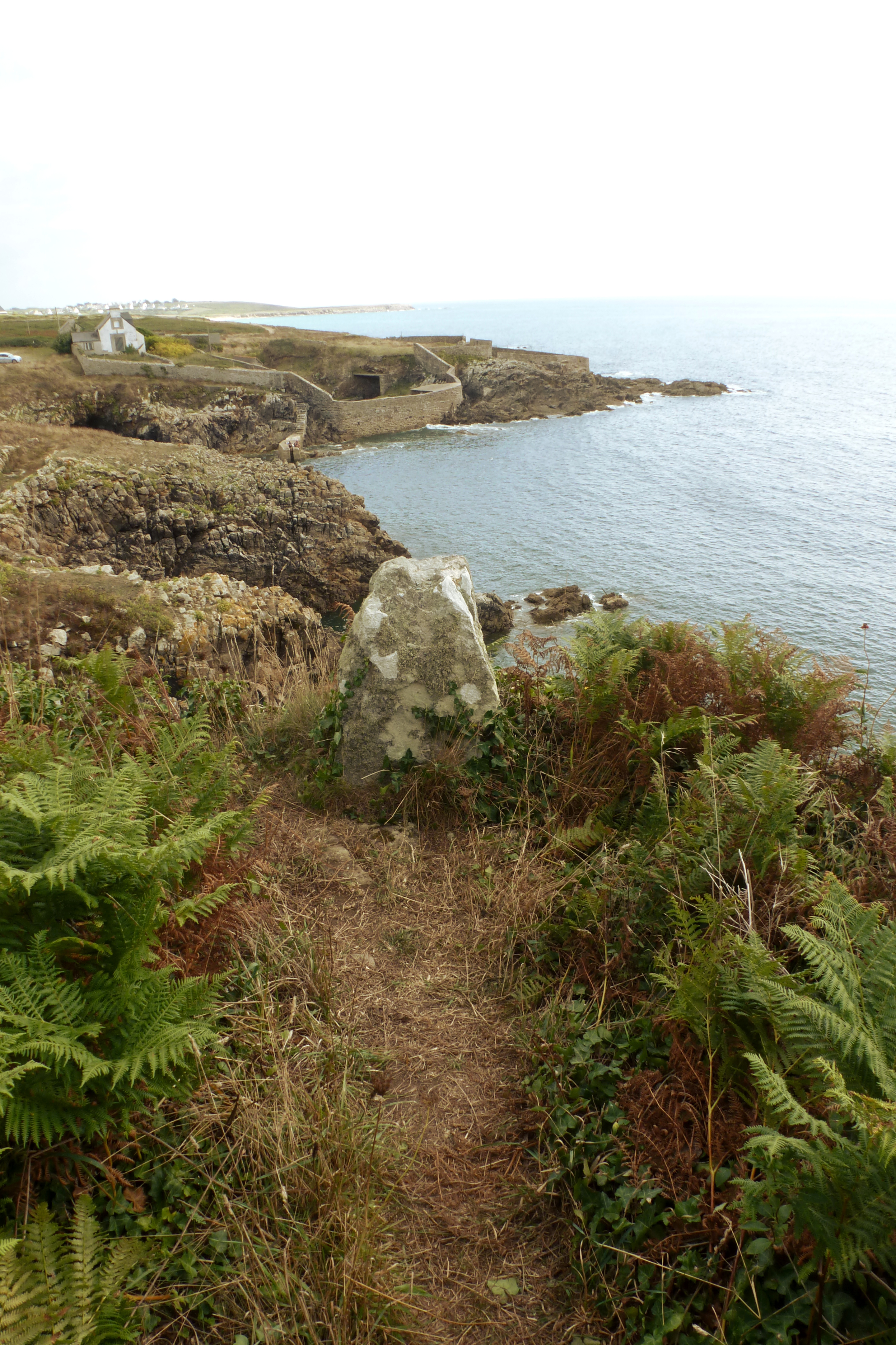 Pors Tarz, côté ouest de l'anse, pierre dressée 1 pour fixation d'un mât de levage.Immatriculation