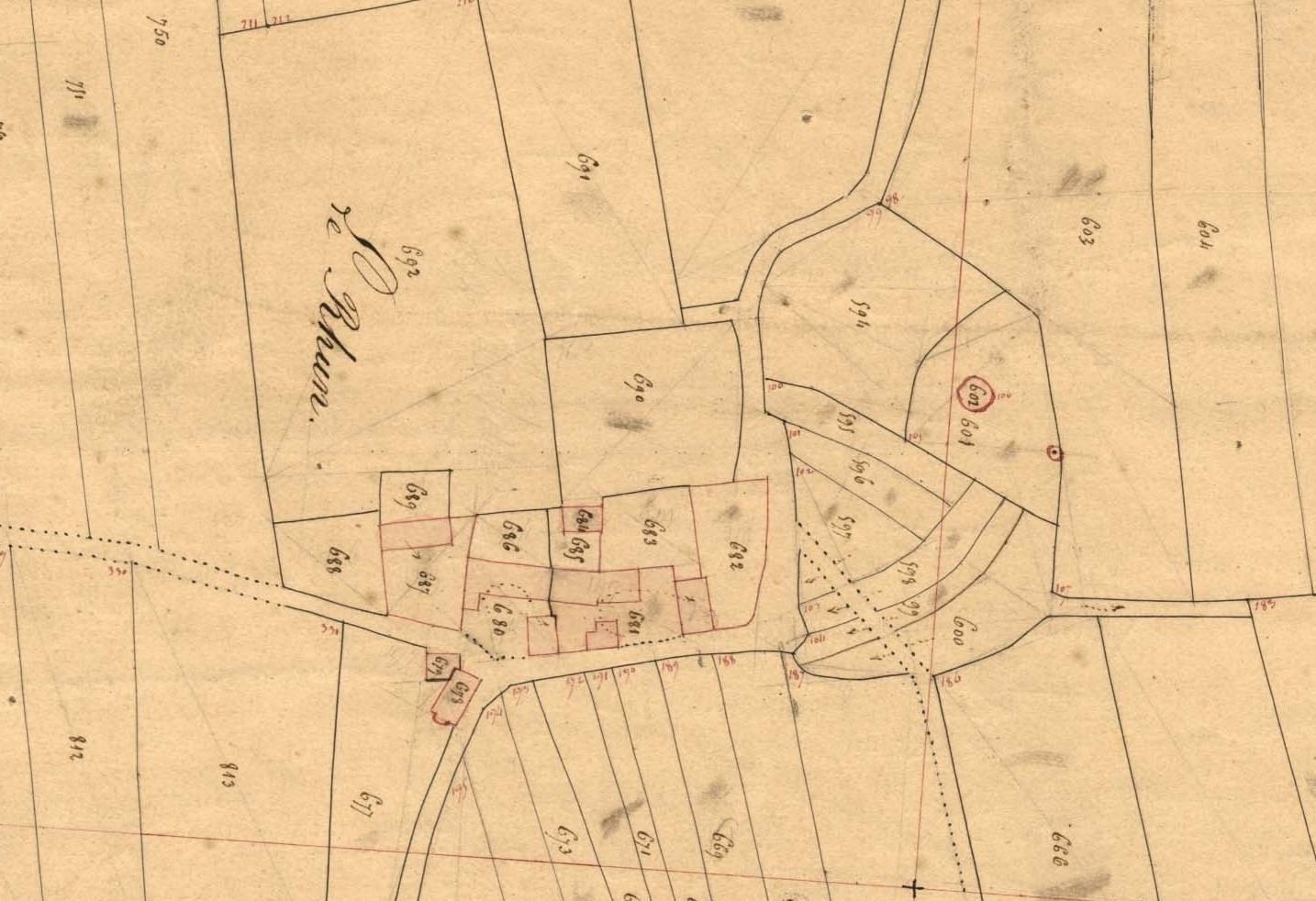 Moulin et village du Rhun, cadastre ancien de la commune de Plogoff, 1837.Immatriculation
