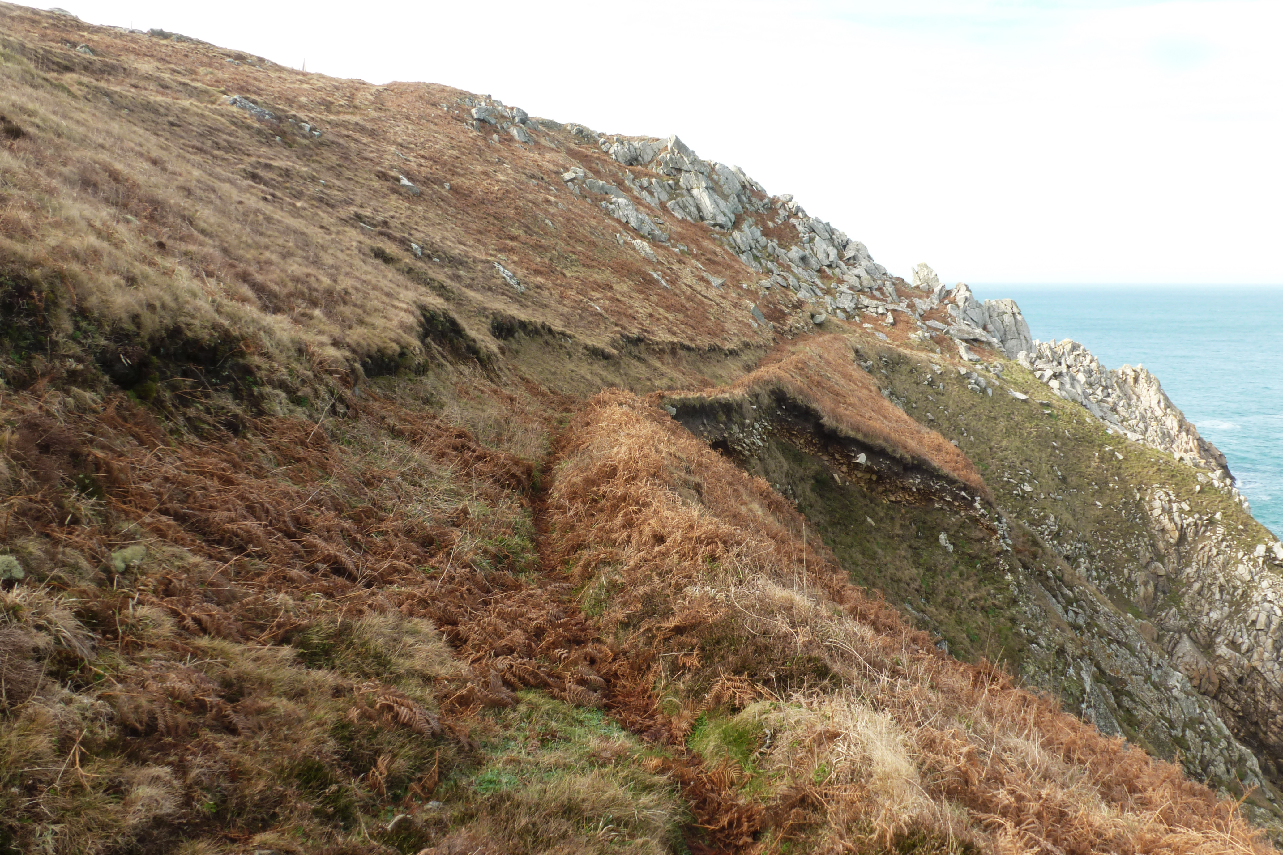 Sentier d'accès à flanc de falaise.Immatriculation