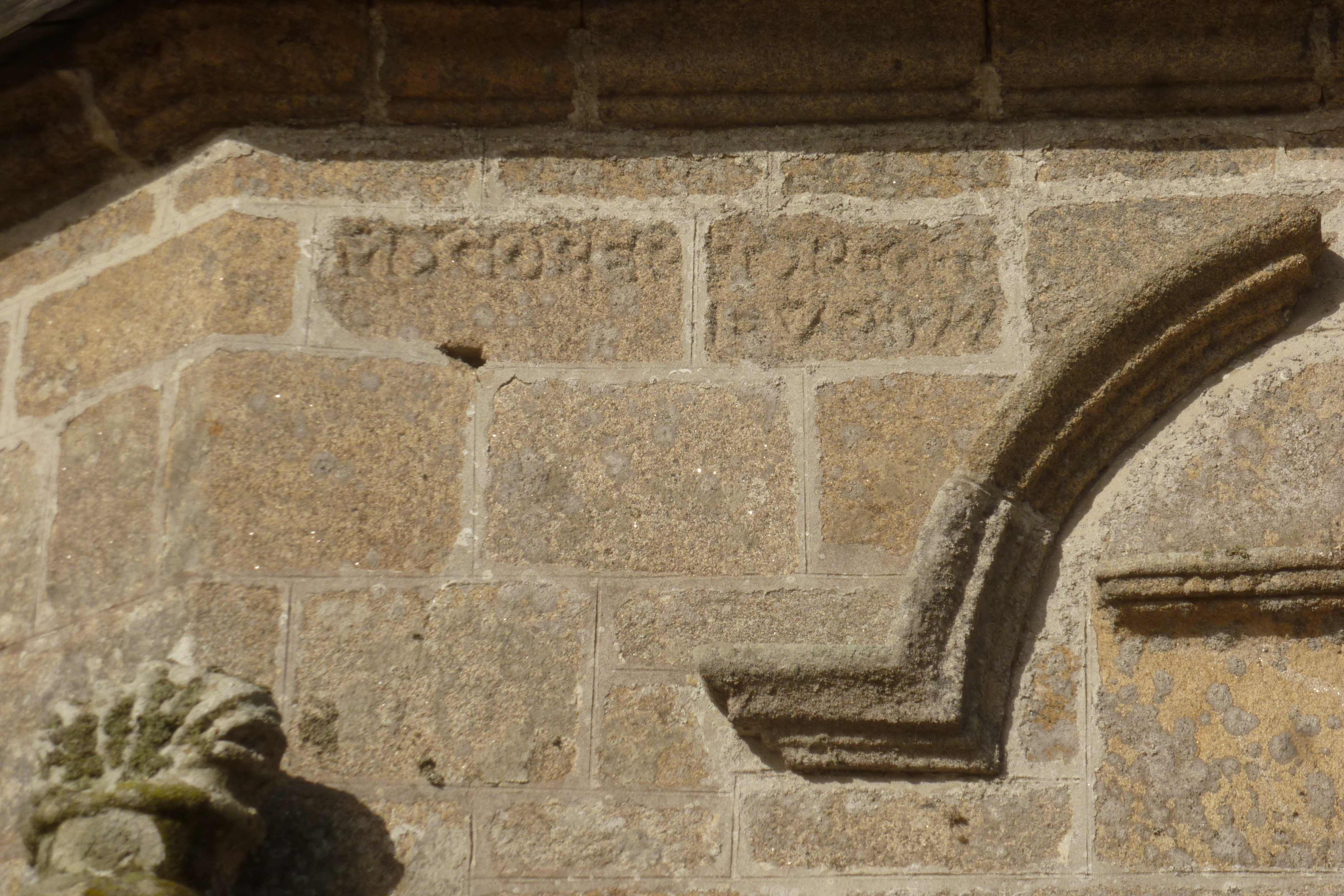 Elévation est, chevet, détail de l'inscription : M GOBERT RECTEUR 177(?). (2019)Immatriculation