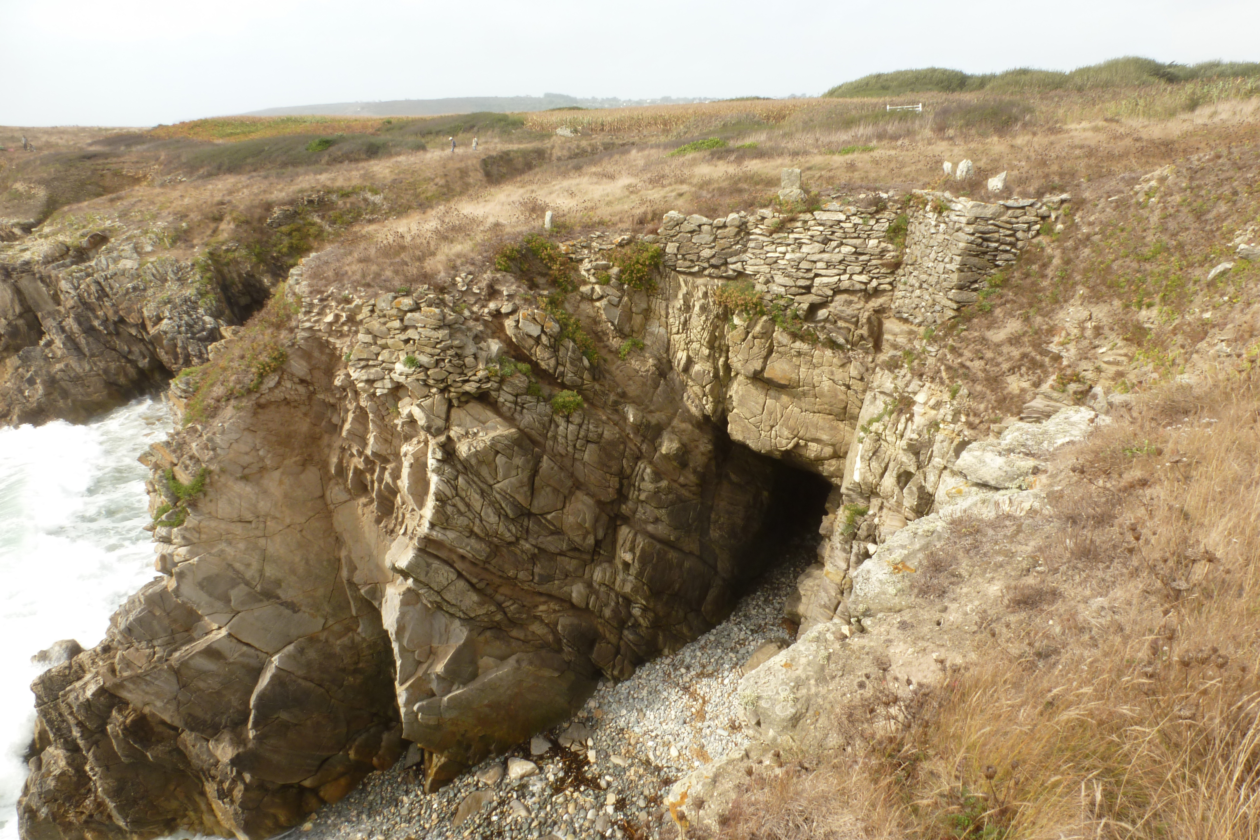 Pointe du Castel, murets de soustenement au-dessus de la crique à goémon dite "kougon vras". Vue générale prise de l'est. (2019)Immatriculation
