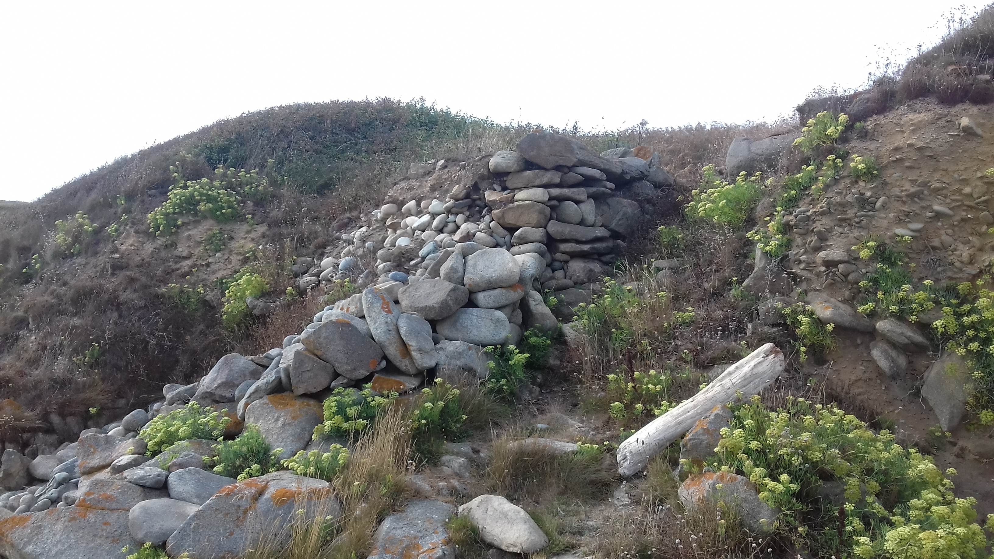 Senan Brignéoc'h, muret de soutenement en galets dit "Ar Gaor Horellou".Immatriculation