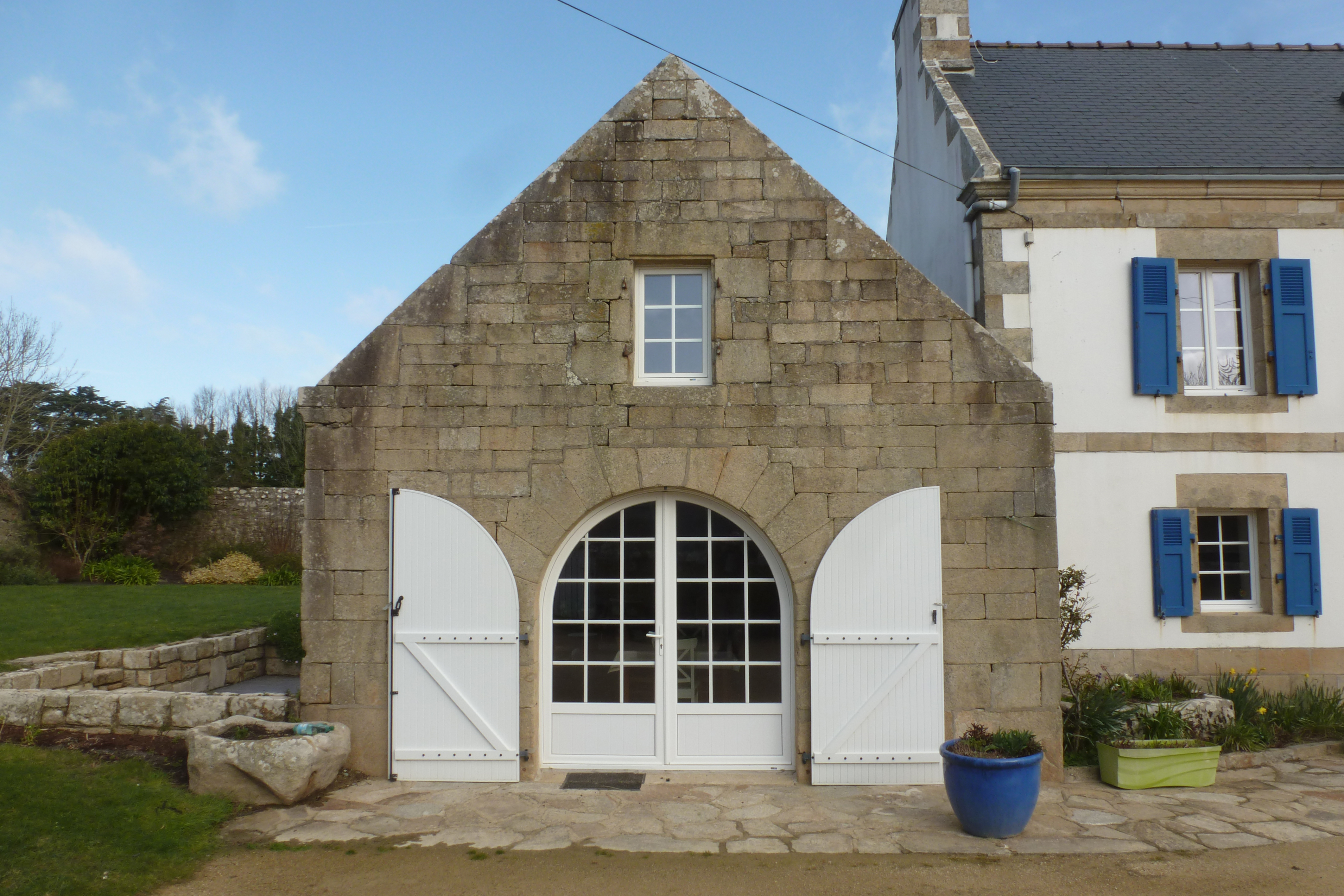Trogor, ferme 3, grange à porte charretière datée 1835, pignon sud en pierres de tailLe et ouverture en plein cintre.Immatriculation