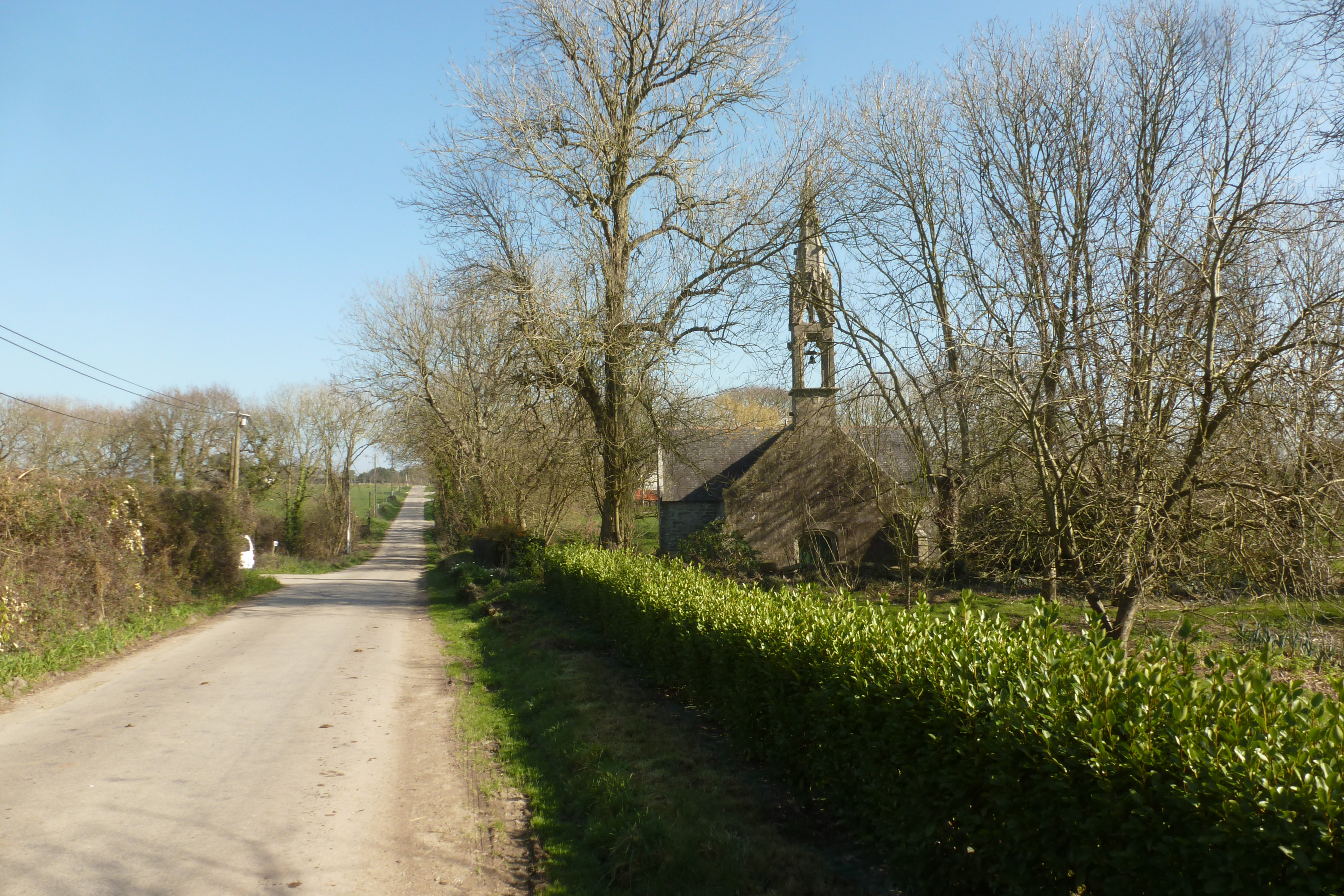 La chapelle dans son environnement, vue prise de la route, à l'ouest. (2019)Immatriculation