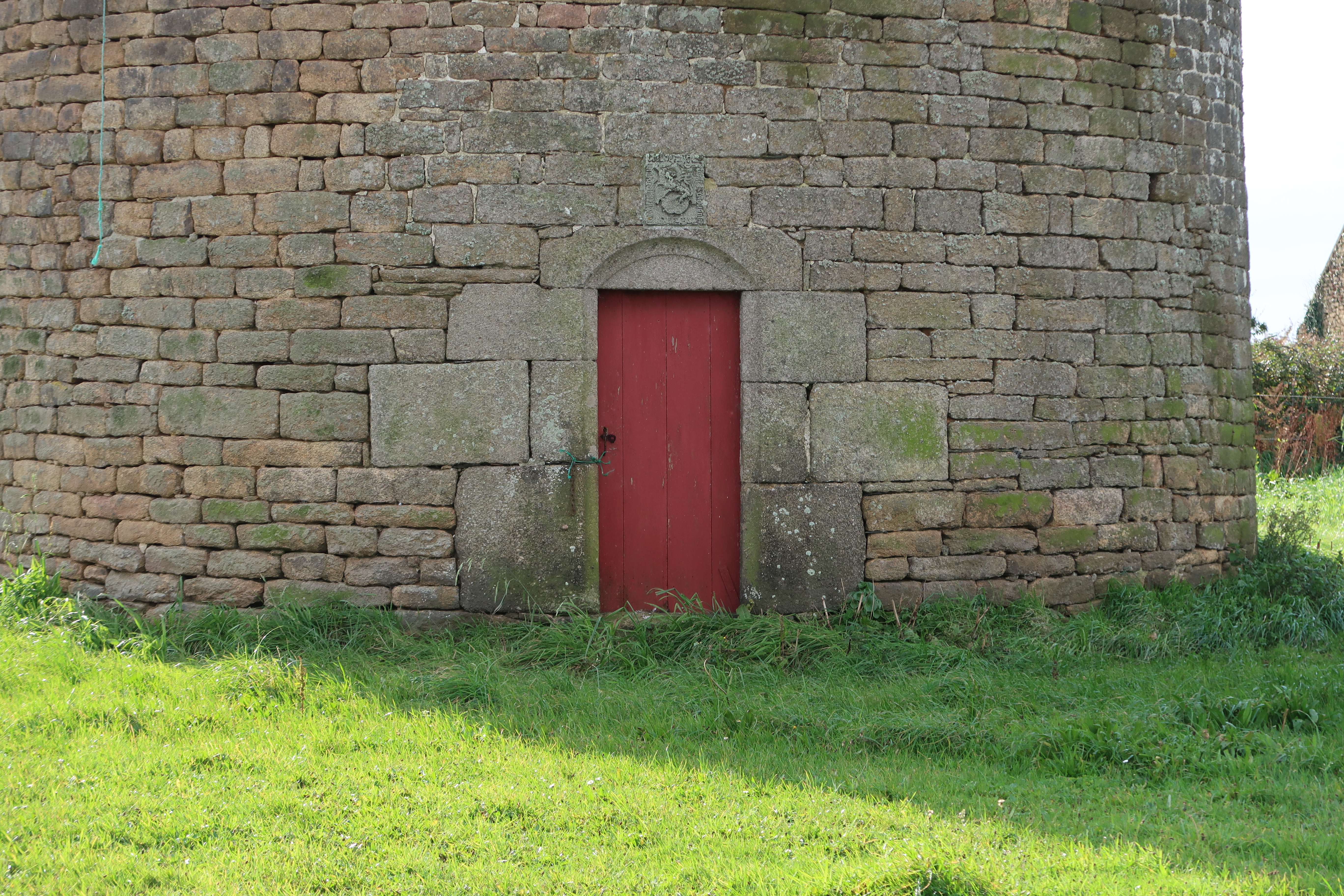 Colombier, élévation nord percée d'une porte surmontée par des armoiriesImmatriculation
