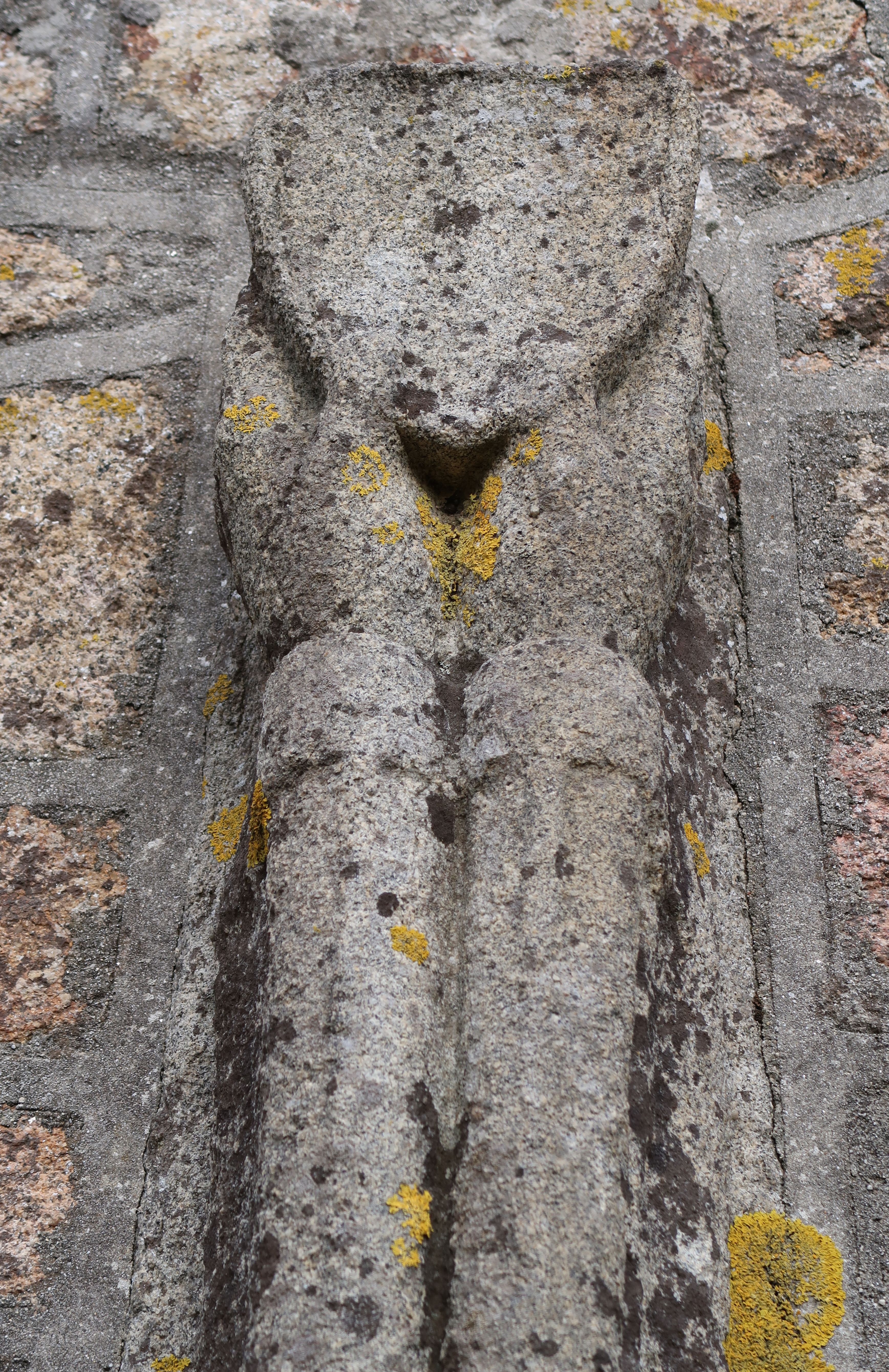 Détail de l'ornementation de la porte : blason porté par deux avants-brasImmatriculation