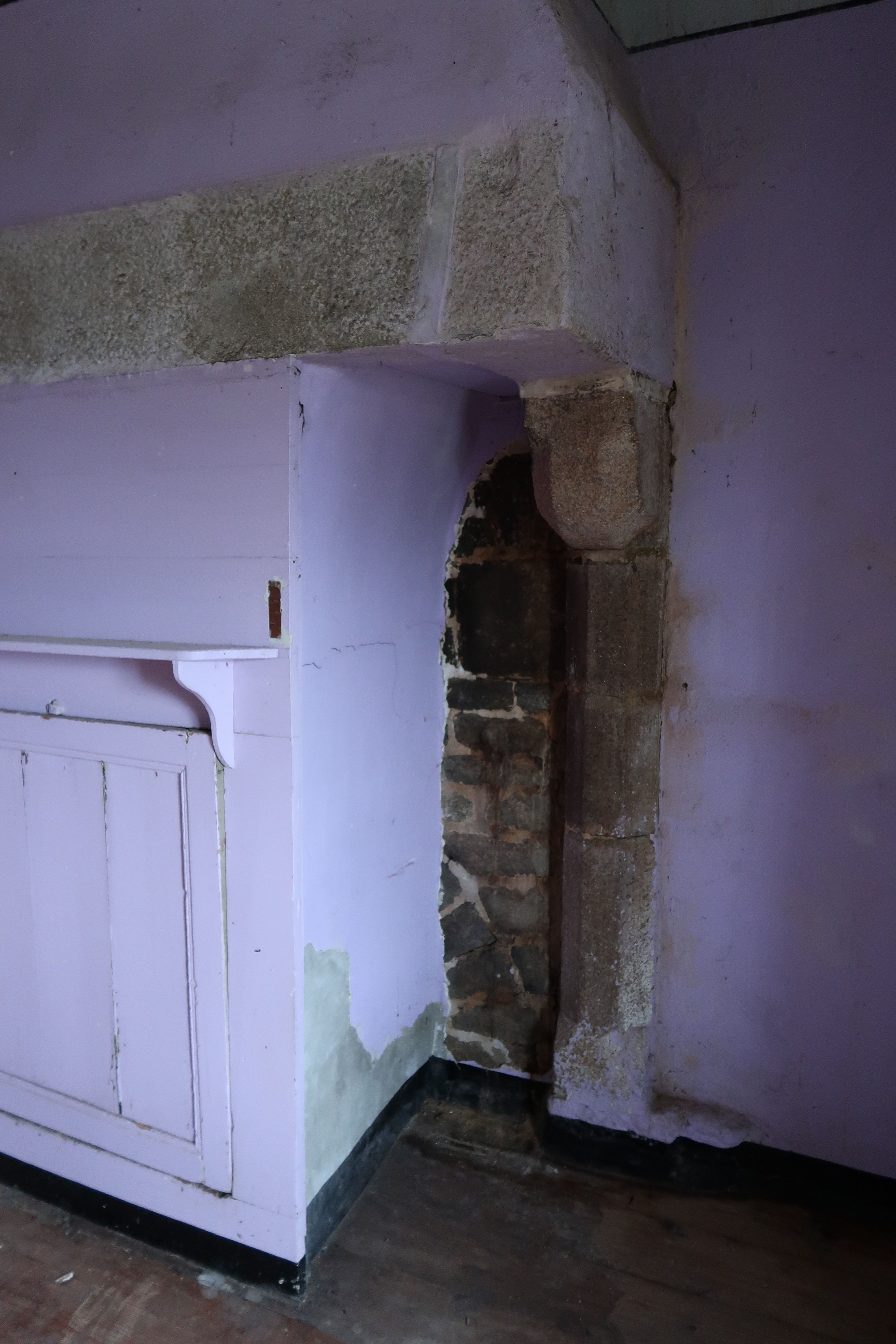 Etage, pièce à feu à usage de chambre : placard masquant partielement la cheminée, détail de l'un des deux piédroitsImmatriculation