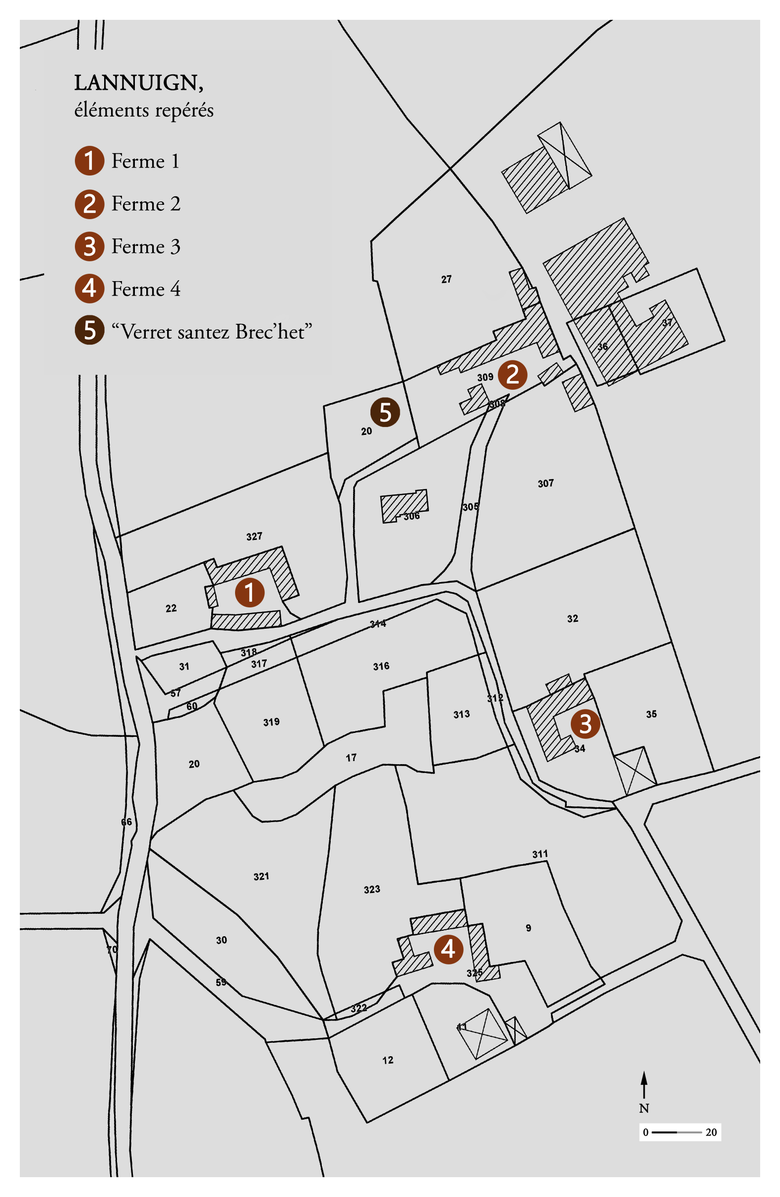 Village de Lannuign, élements repérés. Fond : cadastre 2019.Immatriculation