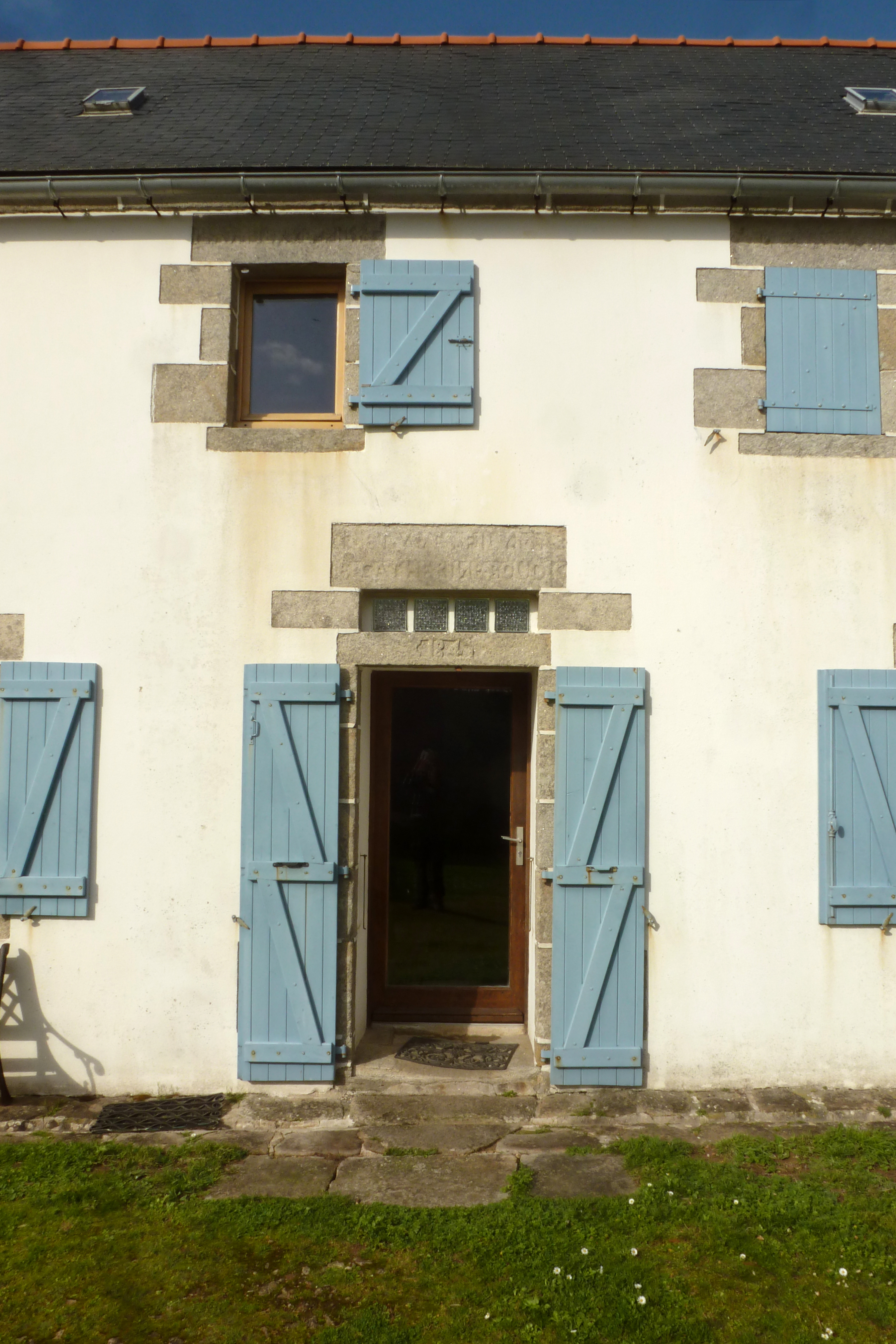 Logis, détail de la porte d'entrée et inscription : CLET YVES FILY MIE CATHERINE BOUDIC 1841.Immatriculation