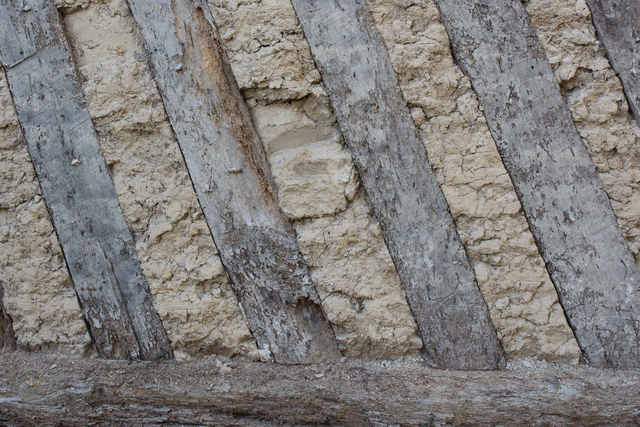 Colombes obliques de la façade nord avec remplissage en torchisImmatriculation