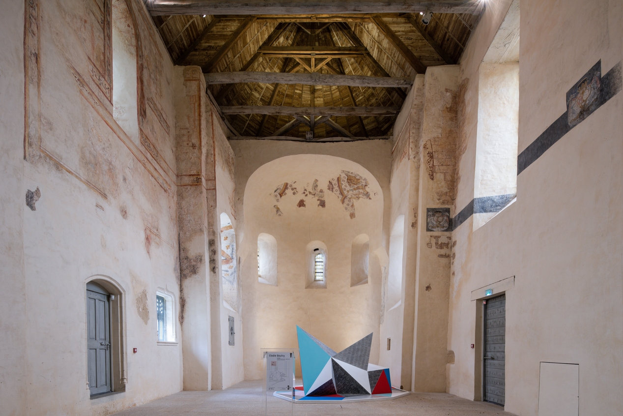 Peintures murales sur les murs du choeur. Au centre oeuvre d'Elodie BoutryImmatriculation