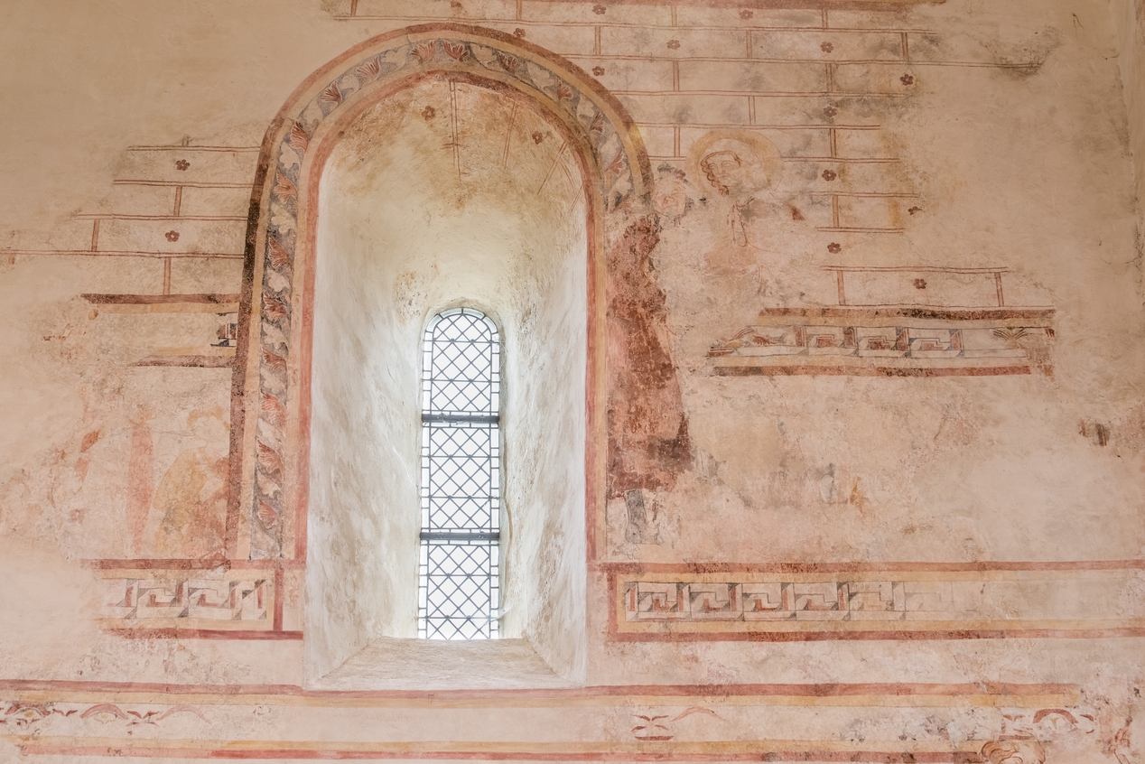 Mur sud du choeur. Faux appareil du XIIIème siècle et vestige d'un décor figuré du XIVème siècleImmatriculation