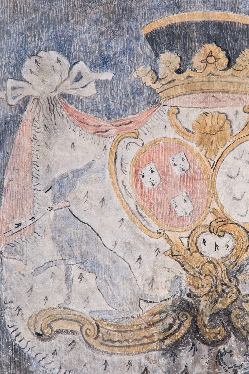 Litre funéraire. Armoiries en alliance de Jacques René le Prestre de Lezonnet et de Louise de Robien. DétailImmatriculation