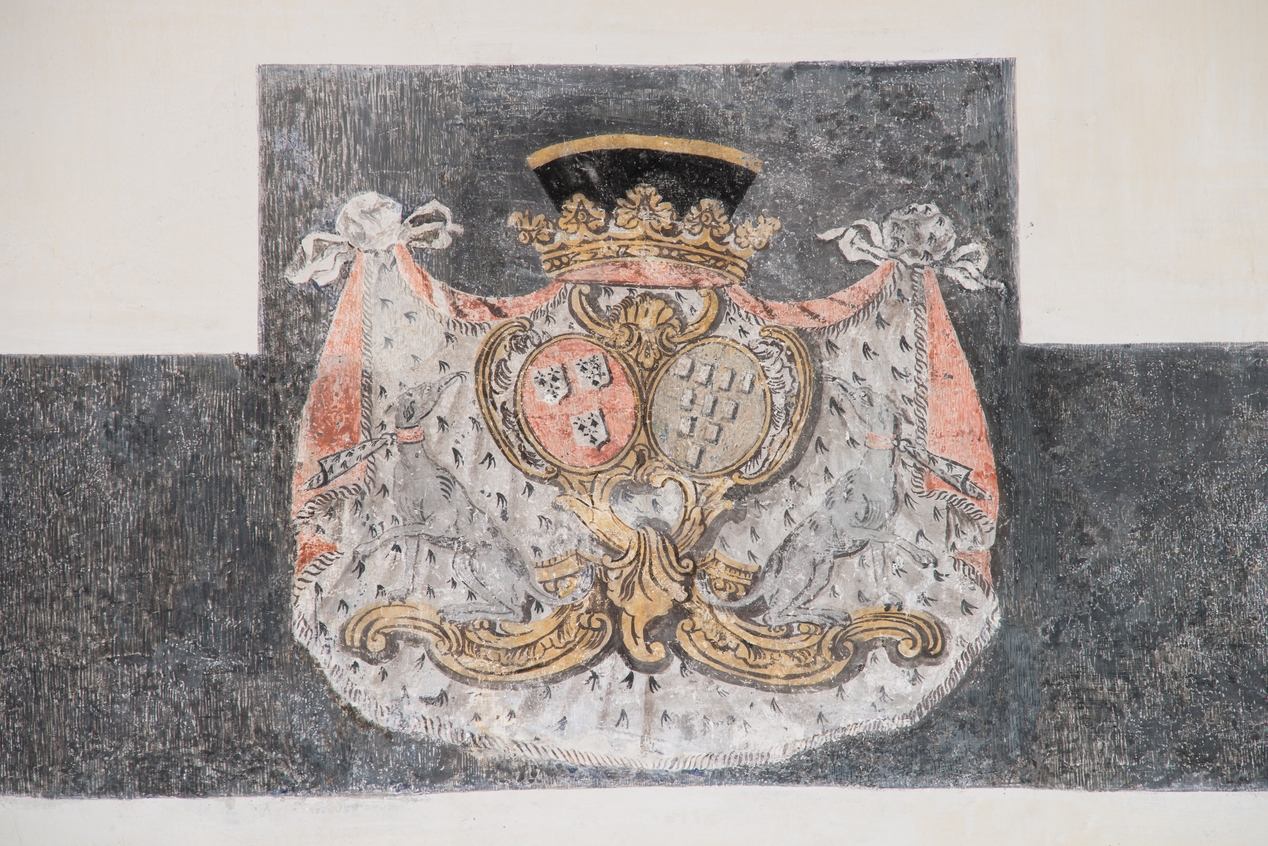 Litre funéraire. Armoiries en alliance de Jacques René le Prestre de Lezonnet et de Louise de Robien.Immatriculation