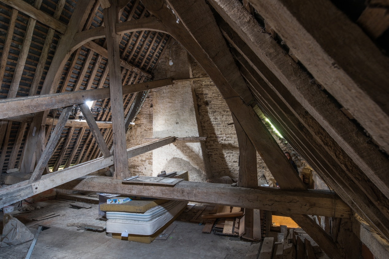 Charpente, vue vers le pignon ouest.Immatriculation