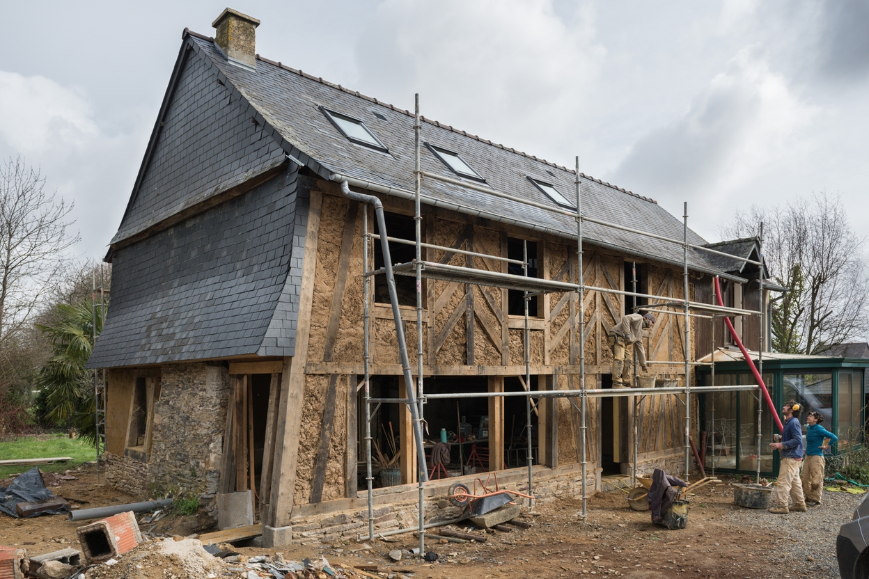 Remplissage en terre-paille sur la façade sudImmatriculation
