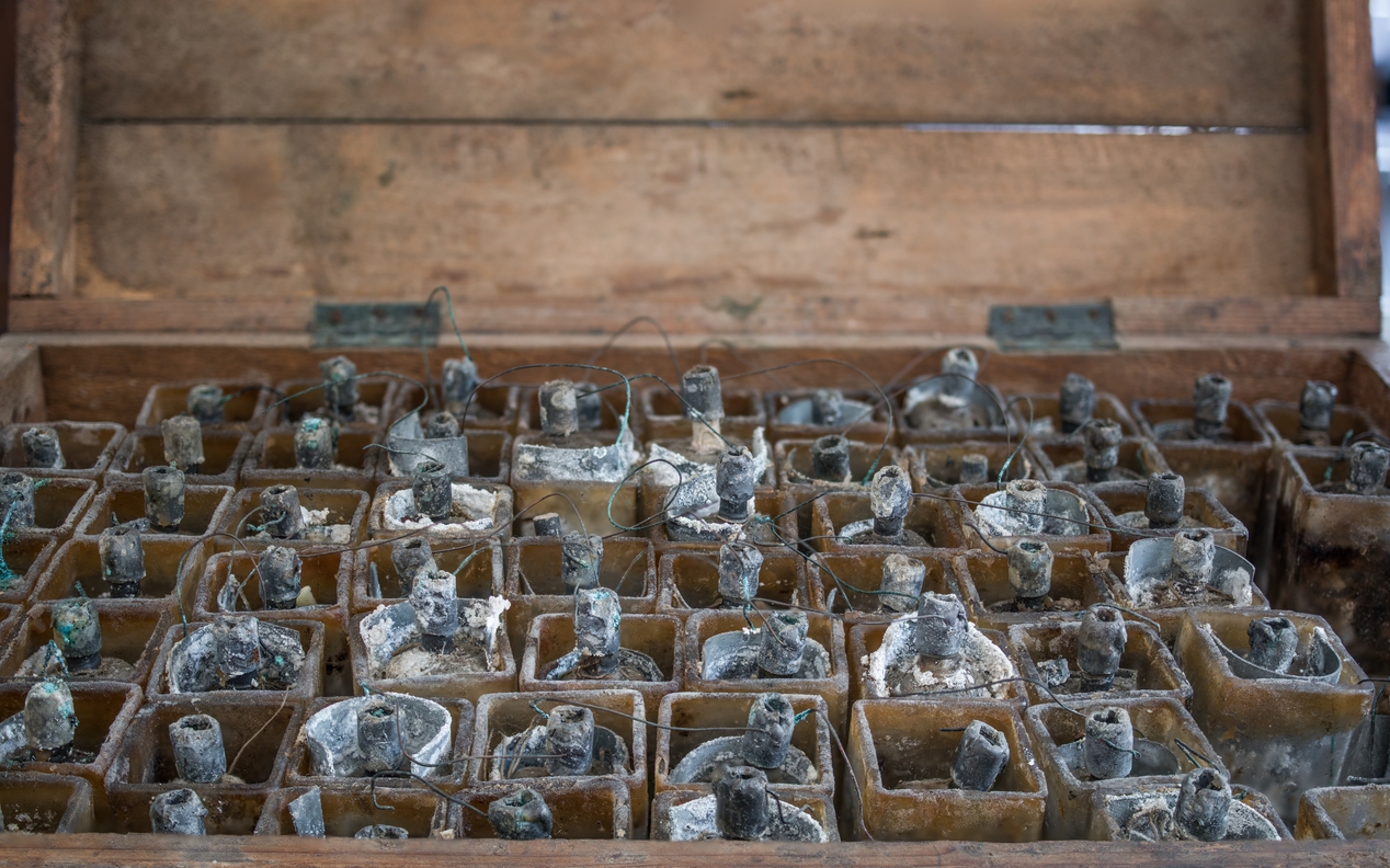 Batterie de piles de Leclanché - Electricité dynamique (Non signé)Immatriculation
