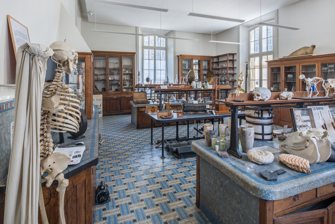 Une partie des collections pédagogiques du lycée Émile Zola exposée dans une ancienne salle de travaux pratiques de chimie (Salle Hébert)Immatriculation