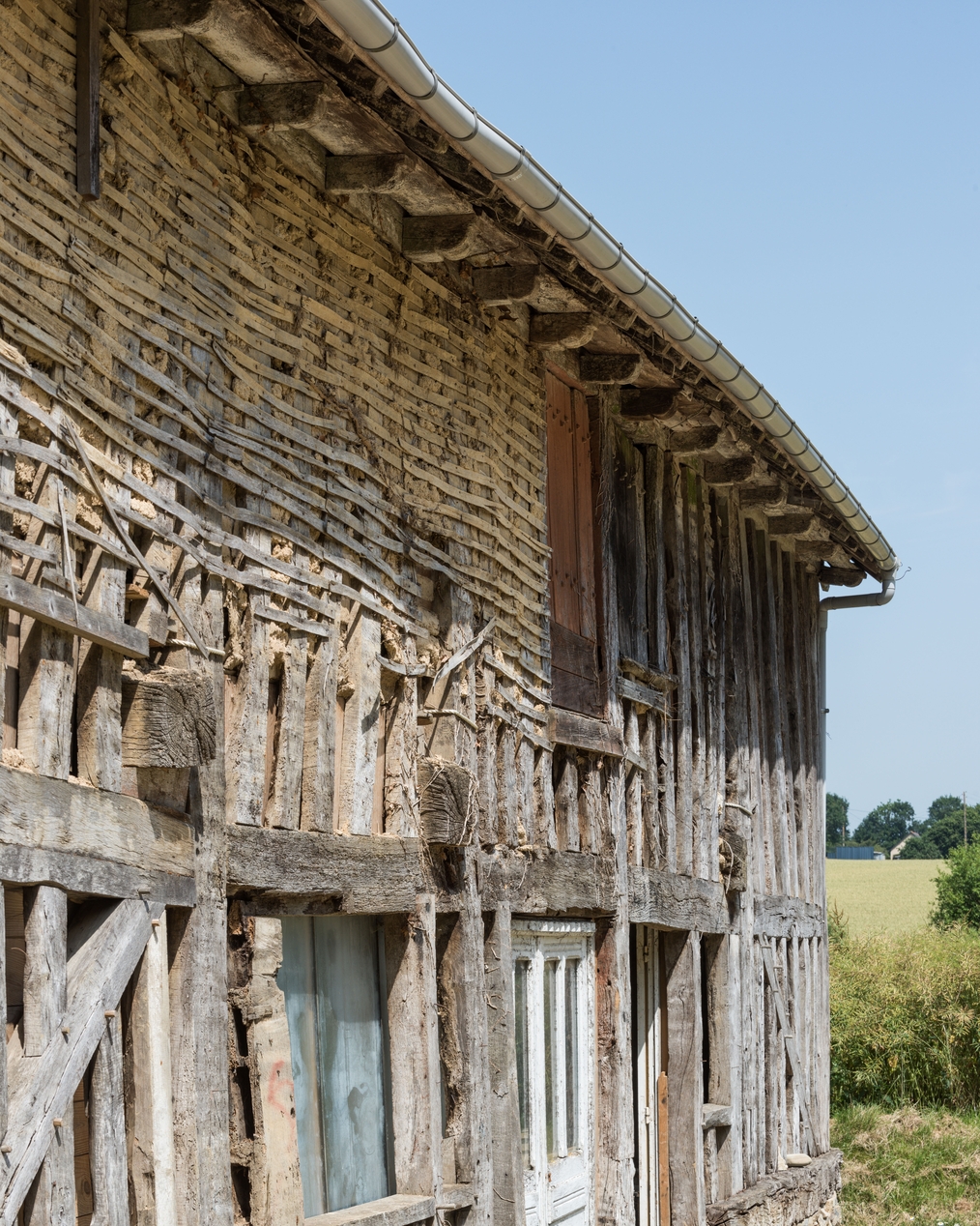 Vue en enfilade de la façade en pan de boisImmatriculation