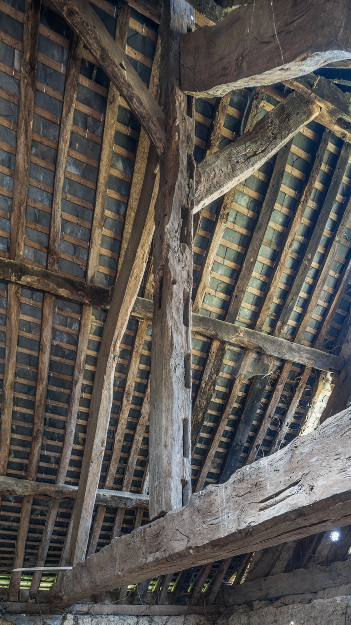 Ferme de charpente avec traces de remploi sur le poinçonImmatriculation
