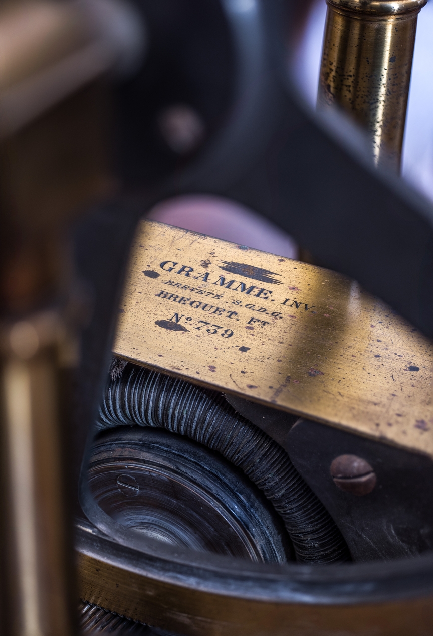 Signature de Breguet sur la machine de Gramme à courants continus - Electricité dynamiqueImmatriculation