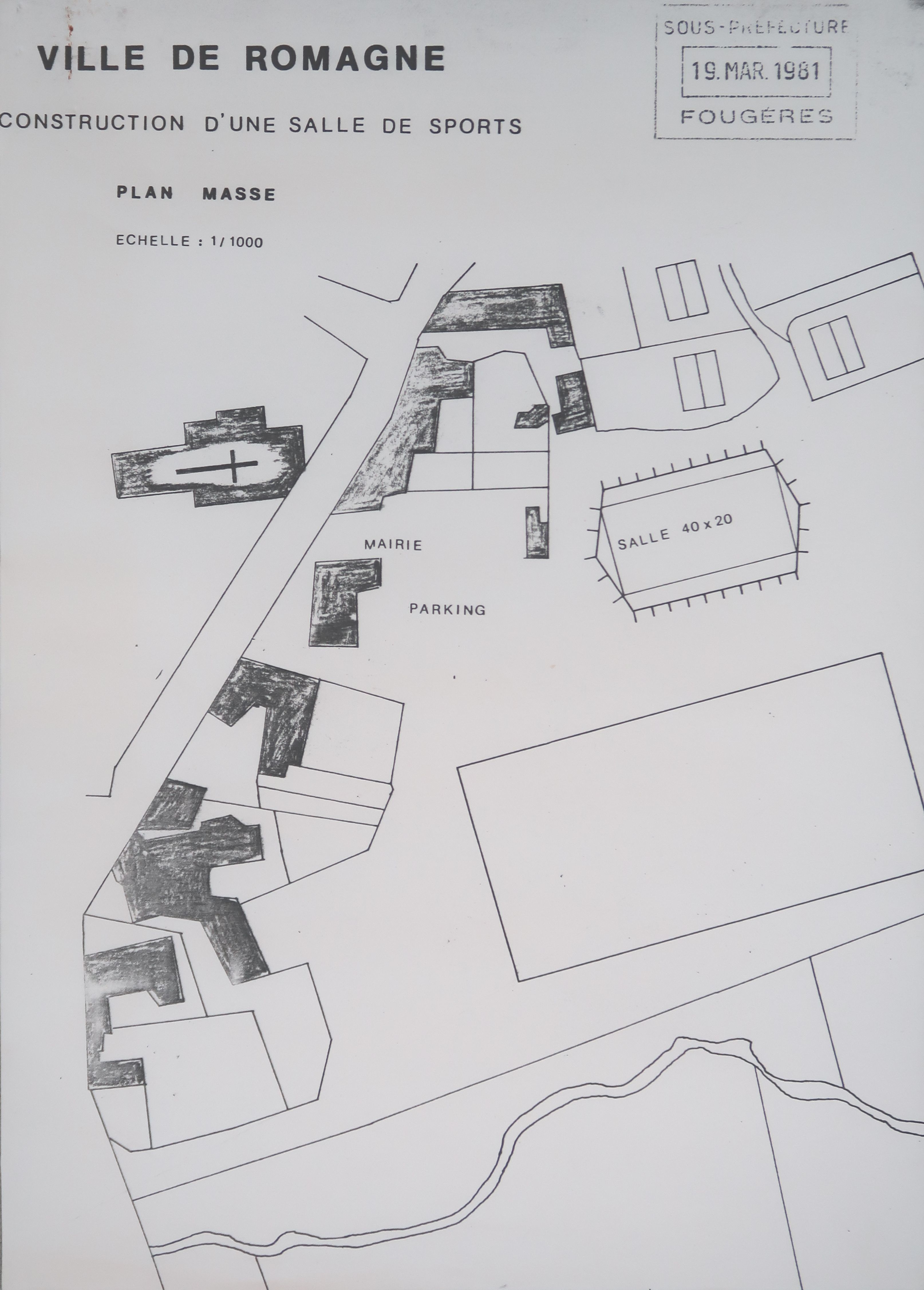 Salle des sports, place de la Mairie (Romagné),
